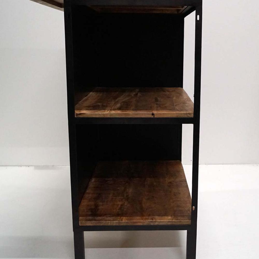 Byg din egen stilfulde bar med dette højre barmodul, der kombinerer jern og massivt mangotræ. Bordpladen og de to rummelige hylder giver masser af opbevaringsmuligheder, og med en hyldehøjde på 42 cm er der plads til både flasker og barudstyr. Modulet kan stå alene eller sammensættes med midtermodul (M06053MI) og venstre modul (M06053LE) for at skabe en større bardisk. En rå og funktionel løsning til caféer, restauranter eller hjemmet.