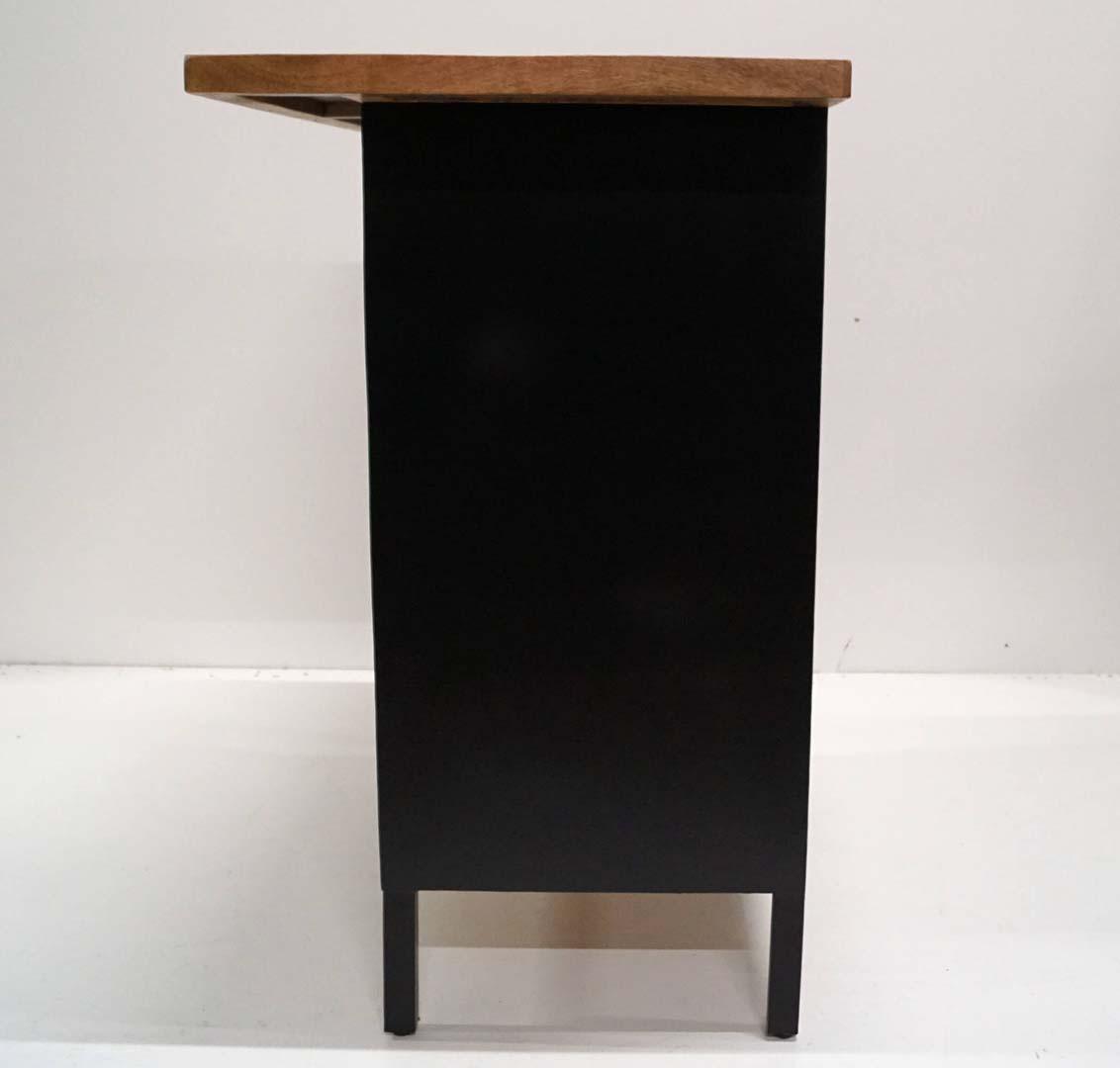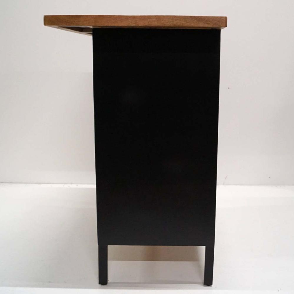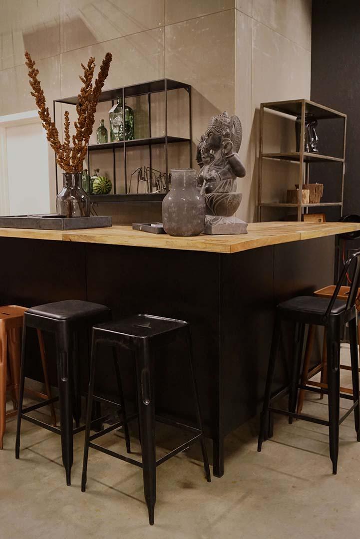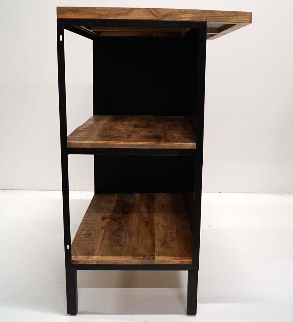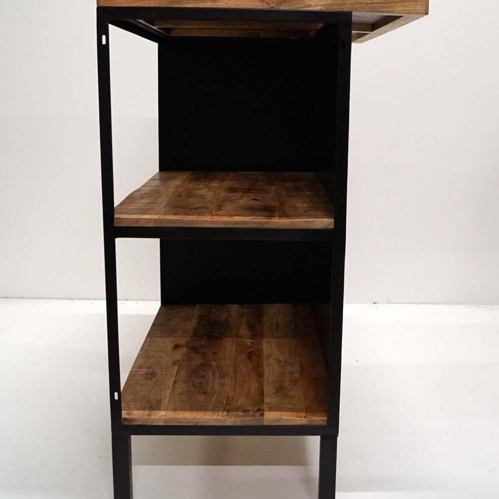 Dette barmodul kombinerer råt, sortlakeret jern med smukt mangotræ, der giver en rustik og industriel stil. Med sine to åbne hylder og en hyldehøjde på 42 cm er der god plads til opbevaring af flasker, glas og barudstyr. Modulet kan bruges alene som en kompakt bardisk eller kombineres med midtermodulet (M06053M) og højremodulet (M06053RI) for at skabe en større bardisk, der passer til dine behov.