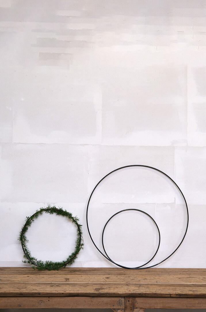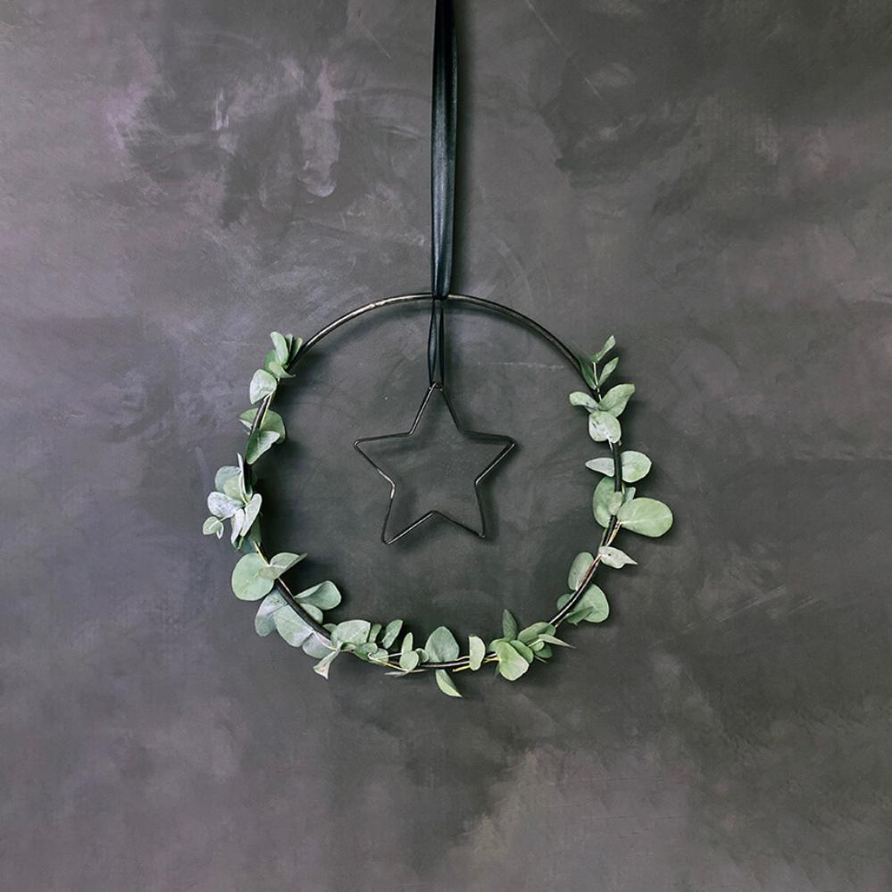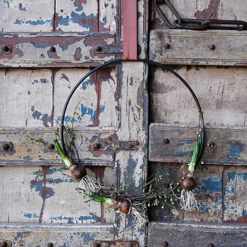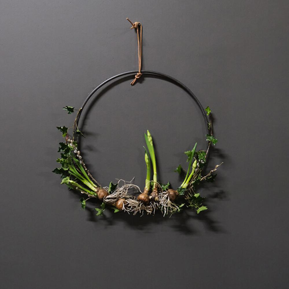 Enkel, rå og stilfuld jernring, der kan bruges på utallige måder i din indretning. Ringen måler 40 cm i diameter og kan både hænges direkte på væggen, sættes på døren eller hænge frit ned fra loftet med bånd, snor eller kæde. Den fungerer som en kreativ base, som du kan dekorere efter årstid og anledning. Bind gran og kogler omkring ringen til jul, pynt den med friske grene og forårsblomster til påske eller brug tørrede blomster og græsser for et mere tidløst udtryk. Den kan også bruges som en personlig pakkekalender, hvor 24 små gaver hænger ned fra ringen. På væggen kan ringen nemt forvandles til en alternativ billedramme – hæng små fotos, kort eller minder inden for ringen og skab et unikt display. Lægger du ringen fladt på et bord, kan den dekoreres med lys, blomster eller sæsonpynt som en del af en hyggelig borddækning. En minimalistisk jernring med uendelige muligheder, der kun begrænses af din fantasi. Findes også i en større variant på 70 cm.