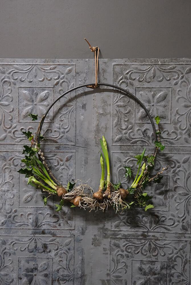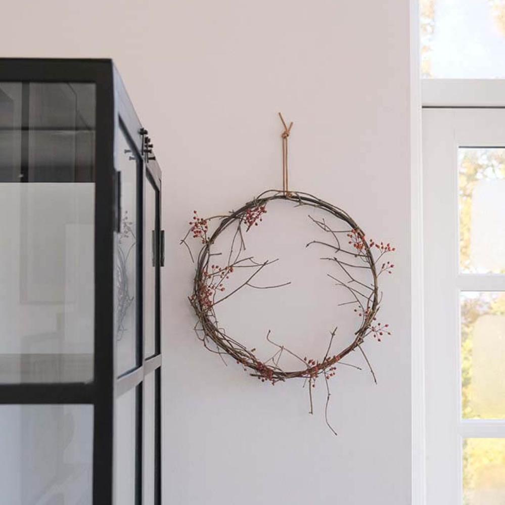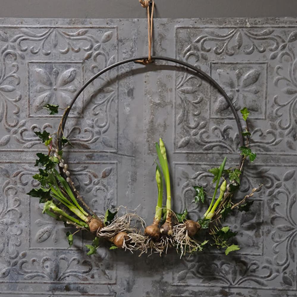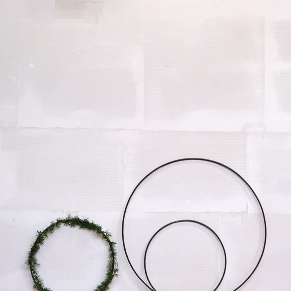 Enkel, rå og stilfuld jernring, der kan bruges på utallige måder i din indretning. Ringen måler 40 cm i diameter og kan både hænges direkte på væggen, sættes på døren eller hænge frit ned fra loftet med bånd, snor eller kæde. Den fungerer som en kreativ base, som du kan dekorere efter årstid og anledning. Bind gran og kogler omkring ringen til jul, pynt den med friske grene og forårsblomster til påske eller brug tørrede blomster og græsser for et mere tidløst udtryk. Den kan også bruges som en personlig pakkekalender, hvor 24 små gaver hænger ned fra ringen. På væggen kan ringen nemt forvandles til en alternativ billedramme – hæng små fotos, kort eller minder inden for ringen og skab et unikt display. Lægger du ringen fladt på et bord, kan den dekoreres med lys, blomster eller sæsonpynt som en del af en hyggelig borddækning. En minimalistisk jernring med uendelige muligheder, der kun begrænses af din fantasi. Findes også i en større variant på 70 cm.