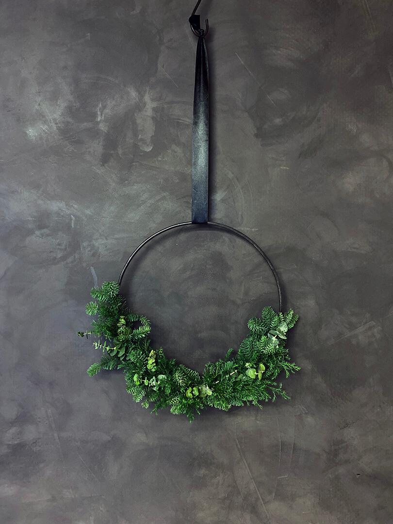 Denne jernring med en diameter på 70 cm kan bruges både til ophæng ned fra loftet eller til at hænge på væggen. Brug lange læderbånd, jutesnore, fiskesnører eller dit yndlingsbånd, hvis du ønsker at ringen skal hænge frit i rummet. Inden ophæng, kan du pynte ringen på mange måder. Ønsker du at fremhæve årets højtider kan du i juletiden binde ringen med gran, kristtjørn, eukalyptus, julepynt, lysholdere etc. Du kan også bruge den som pakkekalender med 24 små pakker hængende ned fra ringen. Til Påske og andre højtider kan du bruge de vækster og grene som årstiden byder på. Ringen er også dekorativ hængende på væggen pyntet med f.eks. evighedsblomster. Du kan også bruge jernringen som en form for vægramme og klistre billeder og små kærlige kort på væggen inden for ringen. Et sjovt alternativ til opslagstavlen. En simpel ring med muligheder så langt fantasien rækker. Ringen findes også i en mindre størrelse på 40 cm.