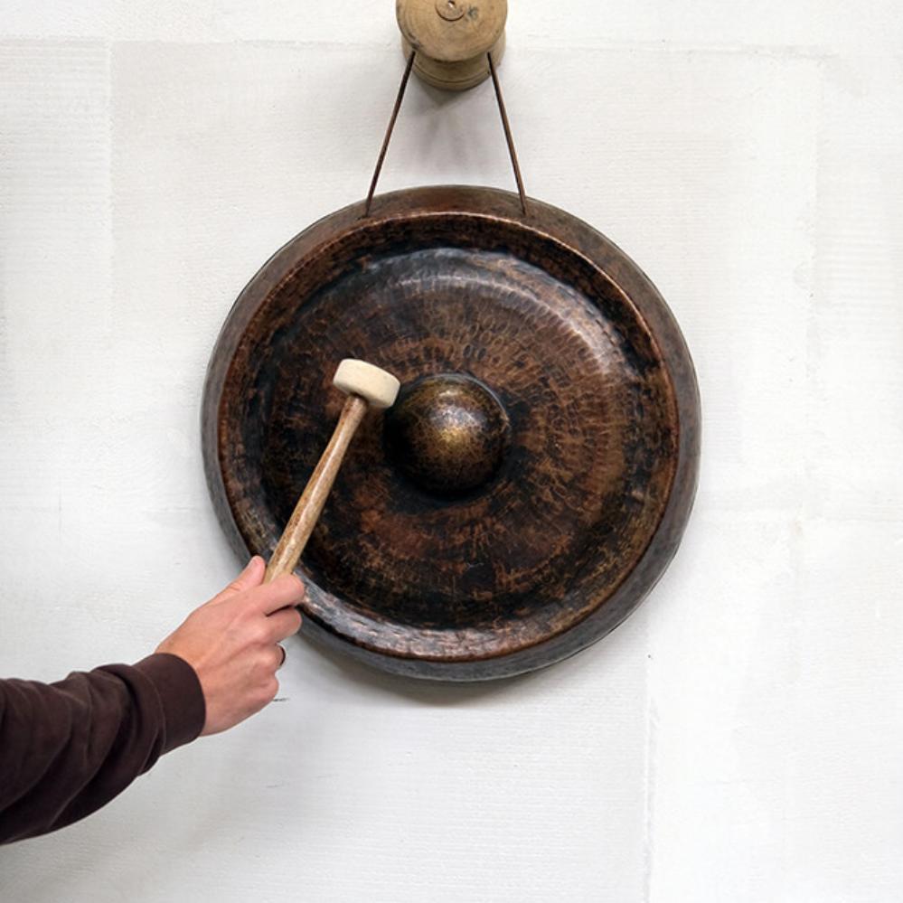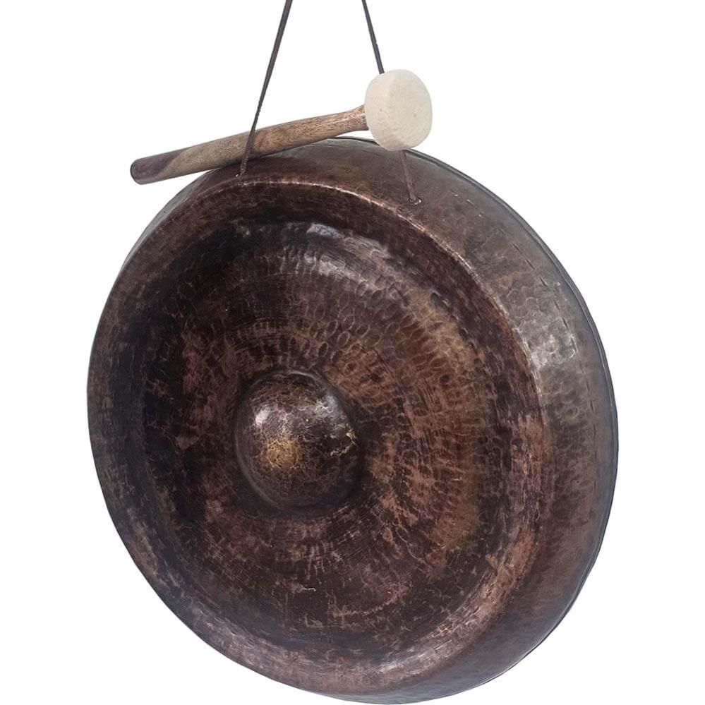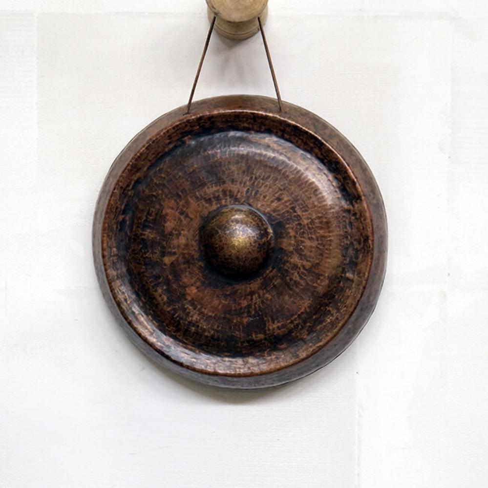 Denne håndhamrede gong gong er en rå og autentisk tilføjelse til enhver indretning. Med dens mørke, patinerede overflade og karakteristiske bankede mønster, bringer den et strejf af gammel, asiatisk mystik ind i rummet. Det medfølgende slagtøj gør det let at lade den dybe klang fylde rummet. Forestil dig denne gong gong hængende i en bar, restaurant, butik eller i dint hjem – klar til at blive brugt til alt fra at markere en særlig begivenhed til at tilføje en rå, dekorativ detalje på væggen. Gong gongen er til dig, der elsker unikke og lidt utraditionelle elementer i din indretning.
