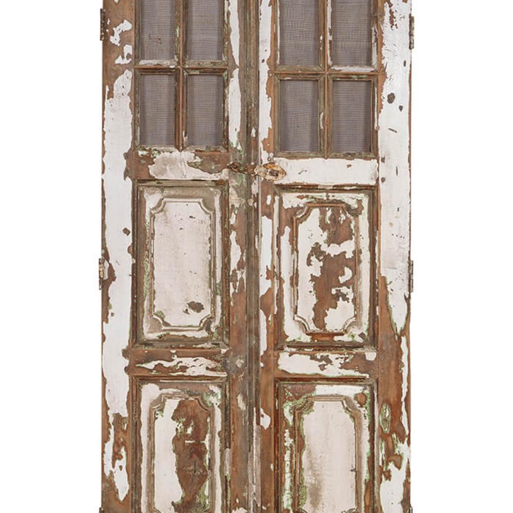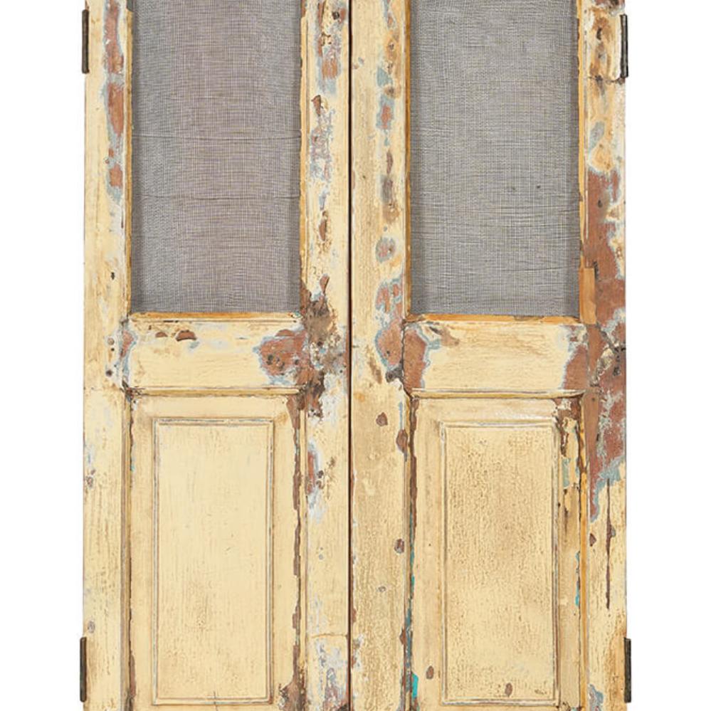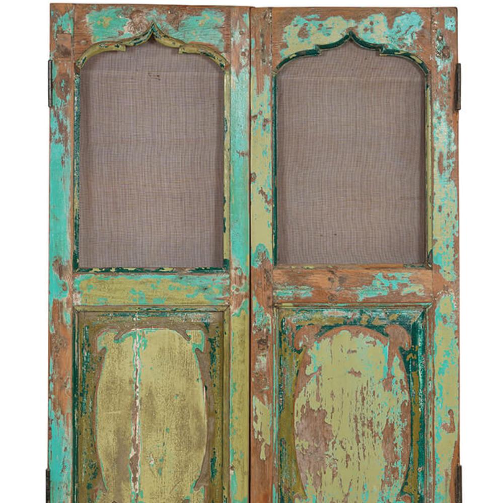 Her får du et sæt gamle vinduesskodder. De har tidliger været brugt som vinduesskodder i Indien. De er alle forskellige i farve, størrelse og finish. Du kan bruge dem som et sæt saloondøre til rumopdeling. Du kan også bruge disse smukke skodder til skabslåger eller en utraditionel vægdekoration. For dig der værdsætter genbrug.