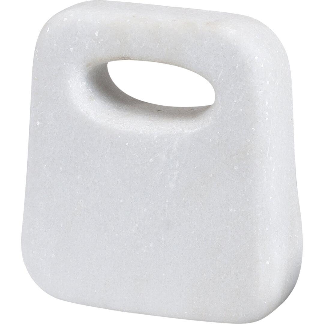Enkel skulptur udført i hvidt marmor med et karakteristisk hul øverst, der giver figuren et moderne og skulpturelt udtryk. Marmor er et naturmateriale, hvilket gør hver figur helt unik i både farve og struktur. Det minimalistiske udtryk gør skulpturen velegnet som dekorativt element i stuen, på kontoret eller i caféindretningen, hvor den kan tilføre et strejf af eksklusivitet. Skulpturen fungerer flot alene, men kan også indgå i et stilleben sammen med andre dekorative genstande, eller bruges praktisk som bogstøtte. Figuren findes også i en mindre størrelse, så du kan kombinere de to og skabe et harmonisk sæt med ekstra dekorativ effekt.