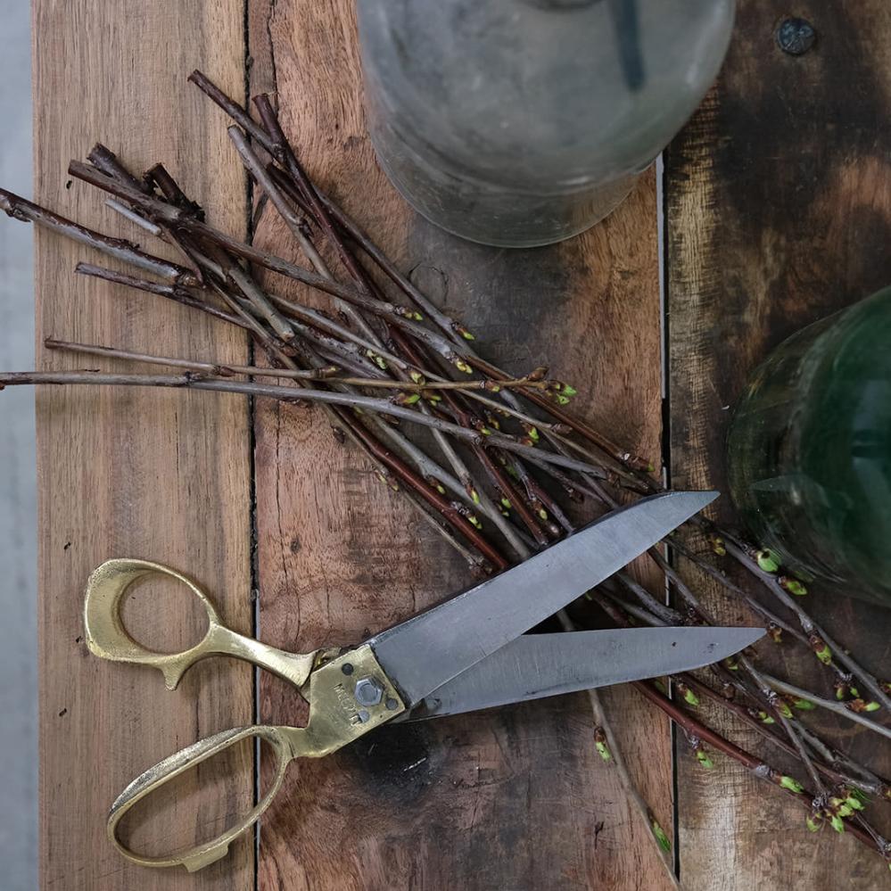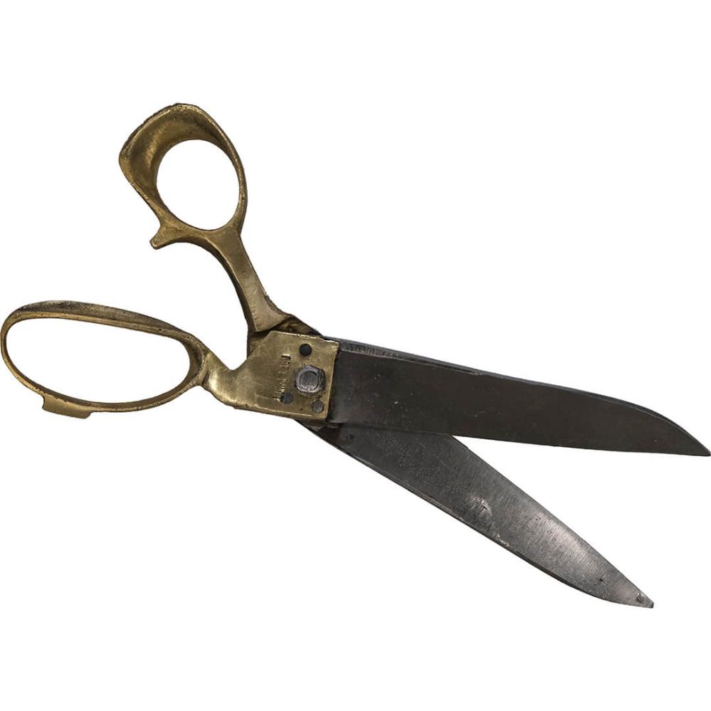 Stor flot vintage skræddersaks med jernklinge og messinghåndtag. Du får her en dejlig saks i en rigtig god klippekvalitet, som også ligger godt i hånden pga. skrædderhåndtagene. Udover den gode klippekvalitet får du også en vildt flot saks, som bestemt ikke behøver gemmes væk, og som kan bruges som en detalje i din indretning.