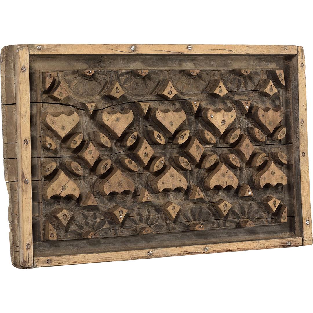 Disse gamle udskårne træudsmykninger er fantastiske til vægophæng. Hver træudsmykning er med eget udtryk, struktur i træet og patina. Der vil være stor forskellighed i størrelse og mønster. Længde 35-45 cm. Højde 50-65 cm. Formene er oprindeligt brugt til cement støbeforme. De færdigestøbte cementplader er herefter blevet brugt til stuklofte og dekoration af bla. bygninger og facader. Sådanne vægdekorationer i træ er det nok de færreste, der har set lignende, og kan du lide at genbruge er dette også det helt rigtige valg. Du kan med disse træforme skabe din helt egen unikke udsmykning på væggen.