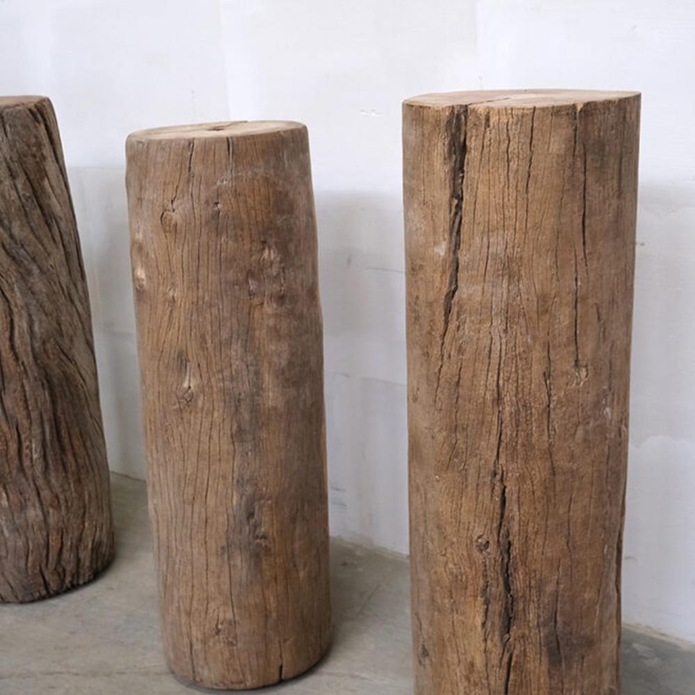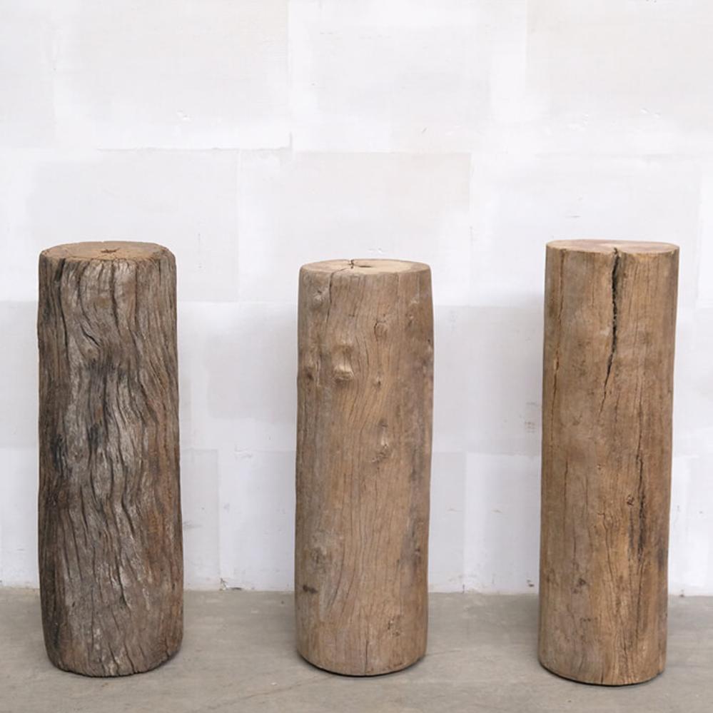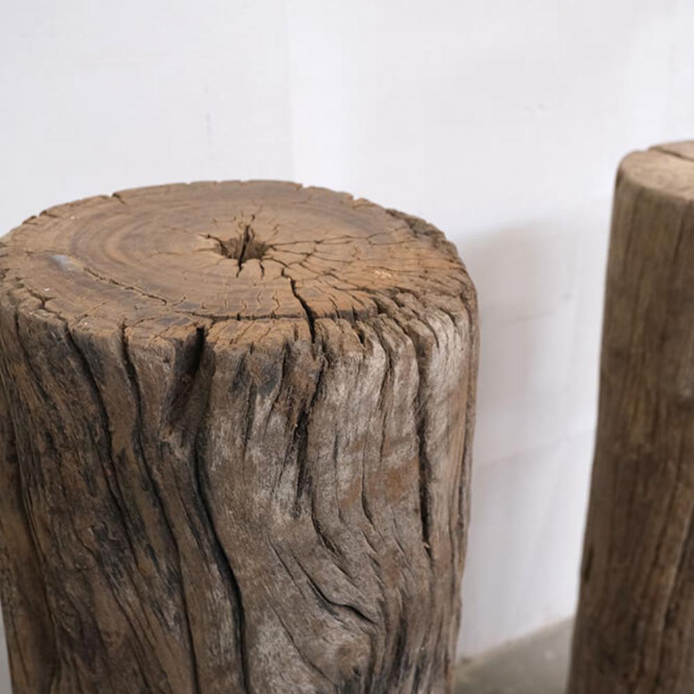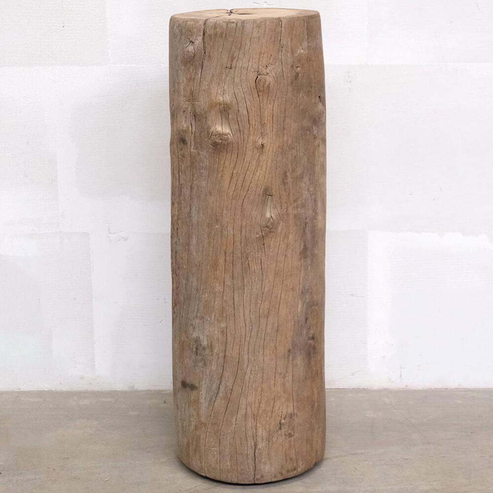 Disse solide træpiedestaler har ikke blot stået fast, de har stået stærkt. Oprindeligt brugt i den indiske industri, er de nu klar til et nyt kapitel med en helt anden slags pondus. Hver piedestal bærer tydelige spor af tid, brug og ægte håndværk. Fra revner og slid til årer og knaster, der gør hver enkelt unik. Brug dem som sokkel til skulpturer, planteopsatser, små kunstværker eller som skulpturelle objekter i sig selv. De tilføjer øjeblikkeligt en rå, rustik stemning til både moderne og industrielle interiører, og fungerer lige godt i entréen, stuen eller galleriet. Med disse piedestaler får du ægte karakter i træform. Ikke noget pjat. Bare massivt, uprætentiøst og autentisk.