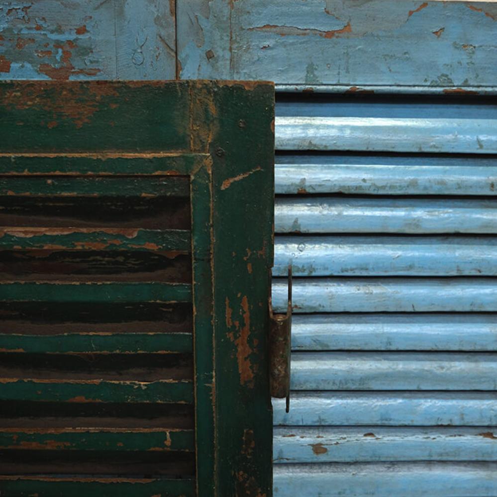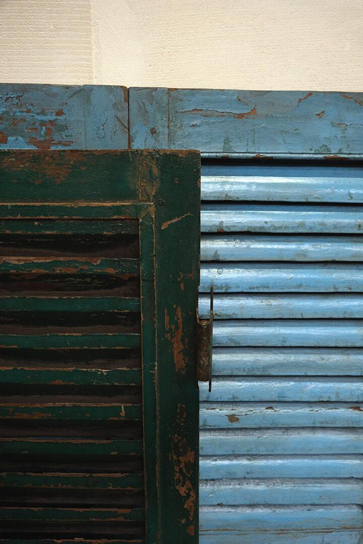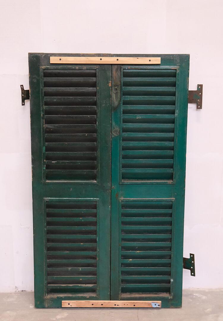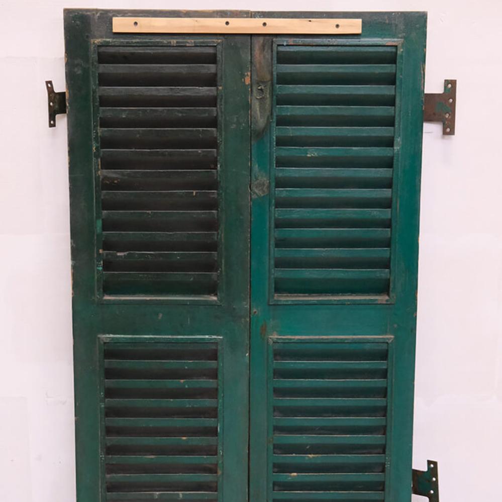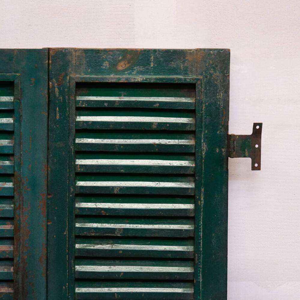 Skønne gamle vinduesskodder med lameller. Brug de smukke patinerede vinduesskodder til en anderledes og unik vægdekoration i din butik eller din restaturant. Vær opmærksom på at der må forventes stor variation i farver og størrelse