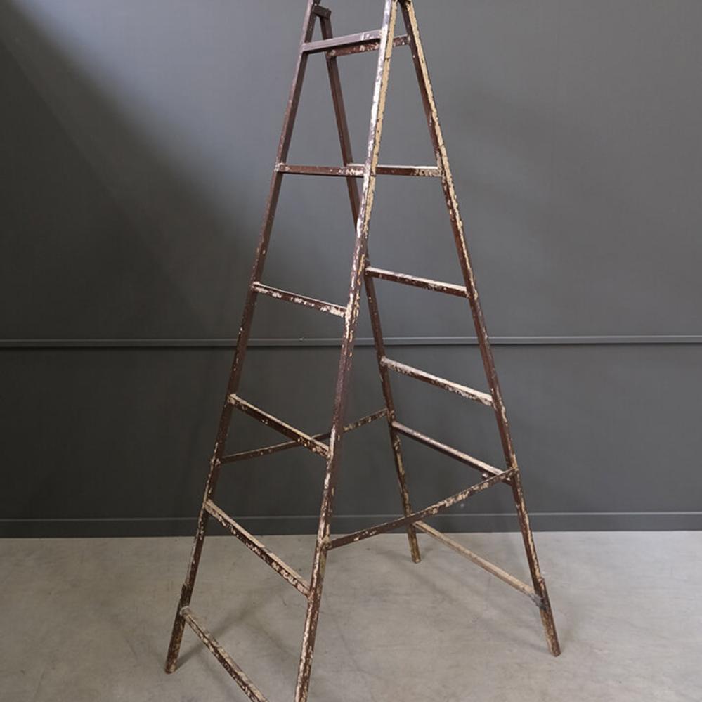 Nostalgisk stige i jern der kan foldes, - bærer på sin overflade en historie af tidens tand og bærer stolt sin autentiske patina. Den gamle jernstige er dekorativ med sin vintage charme og rustikke udseende tilfører den en unik karakter til ethvert rum i din indretning . Lad denne gamle jernstige fortælle sin egen historie og tilføje en ekstra dimension af sjæl og autenticitet. Brug den som en dekorativ genstand, et opbevaringssted eller som en unik detalje i rummet.