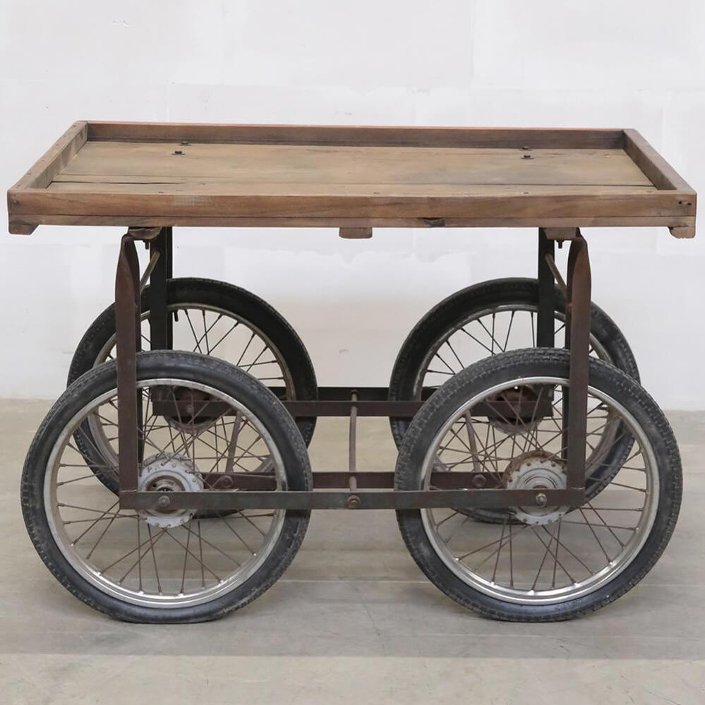 Denne fantastiske markedsvogn har haft sin færden på de larmende, farverige og eventyrlige indiske markeder, hvor den har fungeret som madbod, grønsagsbod eller noget helt andet. Nu kan du bringe en ny historie til vognen. Den er et godt blikfang i din butik eller i din restaurant.