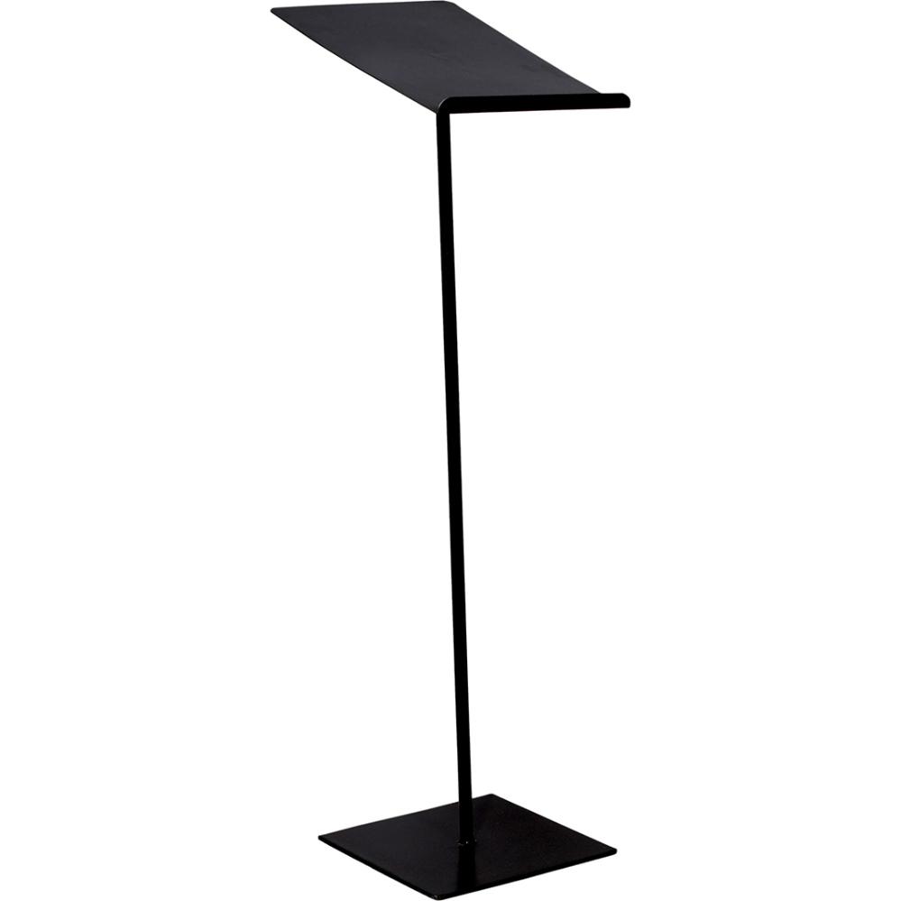 Cool og enkel sort gulvstander i jern. Brug den rå og stilrene gulvstander i din restaurant til display af dit menukort, tidsbestilling mm. Eller hvor som helst du har et bladrekatalog, du gerne vil vise frem på en præsentabel måde. Gulvstanderen passer i en nordisk og enkel indretning. Mål på selve display top: 25 cm bred x 35,5 cm høj x 1,8 cm dyb.