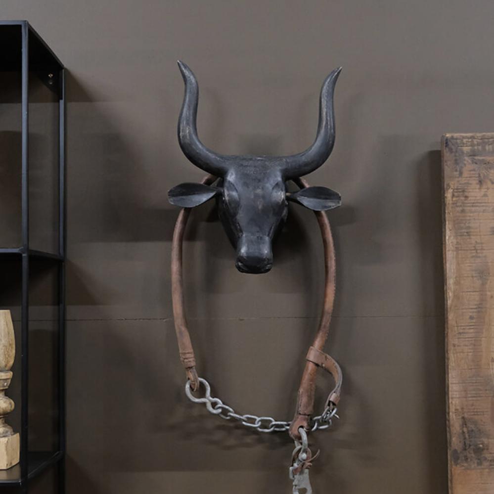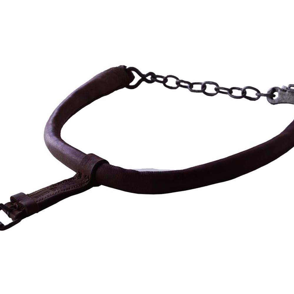 Gammel ko-halsrem, hvor jernet og læderet har fået den hel perfekte patina. Til en cool og unik indretning - brug den til dekoration eller ophæng. Den er også særdeles egnet til tøjbutikken, hvor den kan tilføre noget sjovt og råt til f.eks. jeans-afdelingen.