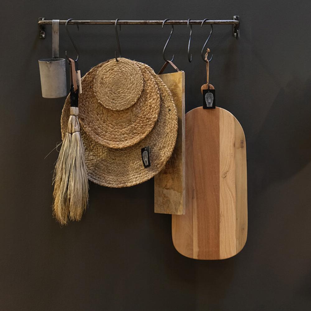 Hvis man kan kalde en kost SMUK, må man sige at det er denne. Den er fremstilet af bast og har en lædersnor. En skøn og anderledes dekoration i din indretning.