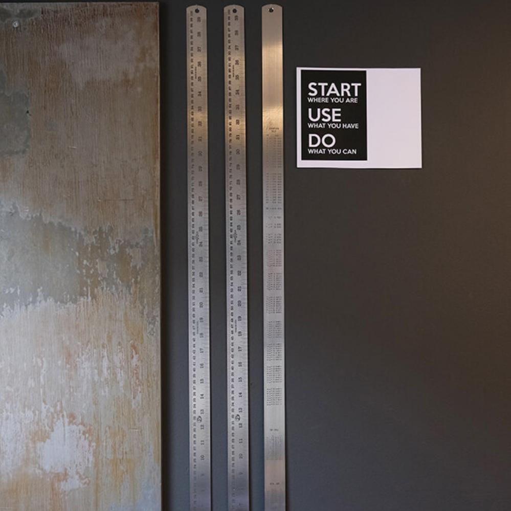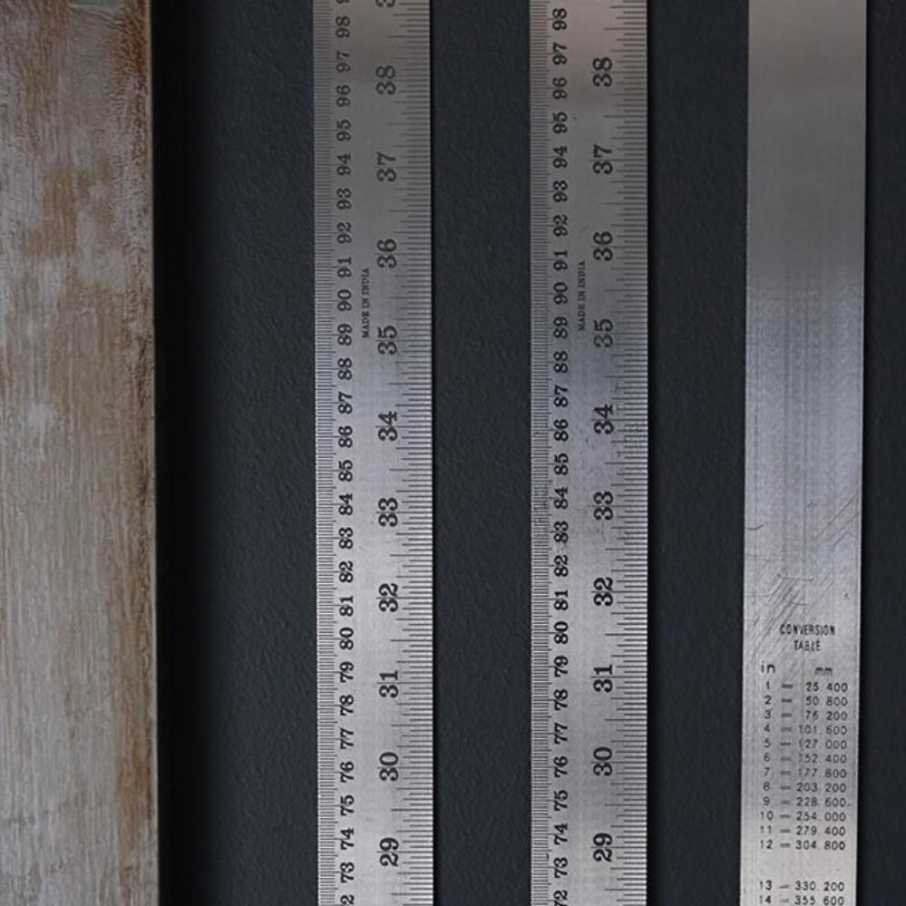 Lineal i metal - 1 meter. Denne metal lineal er nøjagtigt den model, der anvendes i produktionen på fabrikken i Indien. Denne robuste lineal i metal er skabt til præcision og pålidelighed. Med en meter længde er den ideel til både præcise målinger og arbejde i større skala. Udover dens praktiske anvendelse kan den også bruges som en sjov indretningsgenstand, der tilføjer et strejf af industrielt flair til hjemmet eller kontoret.