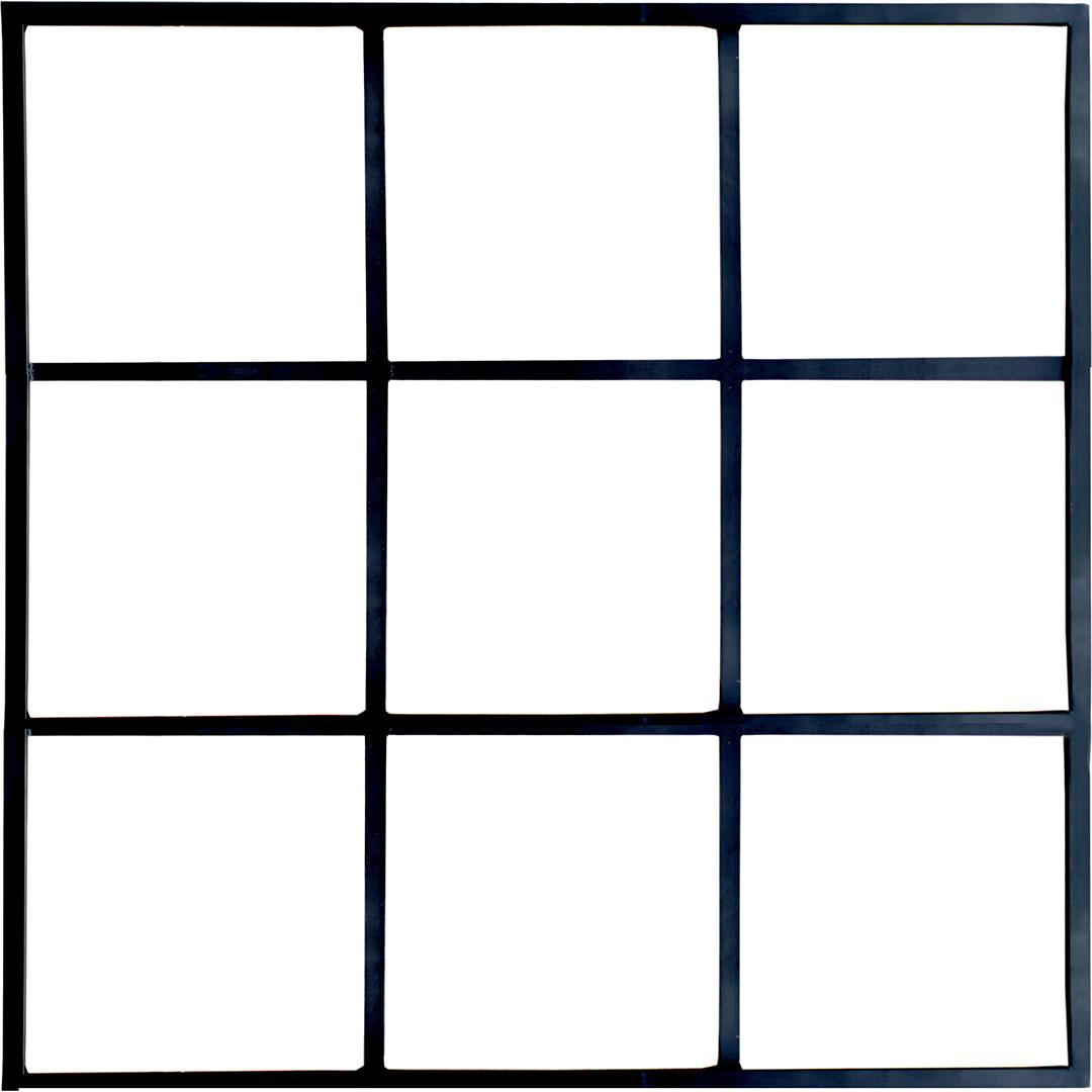 Denne kvadratiske skillevæg eller vinduesramme i sort jern er designet i det klassiske New York-look med 9 felter. Den leveres UDEN glas, hvilket giver dig frihed til at bruge rammen på flere måder, som ren rumopdeling, dekorativ vægramme eller som et kreativt element i din indretning. Den åbne konstruktion tilfører et råt og industrielt udtryk, samtidig med at den bevarer en lethed i rummet. Perfekt både til hjemmet, kontoret eller caféen. Kommer uden beslag. Vi anbefaler, at du rådfører dig med en tømrer for at finde den rette løsning til montering.
