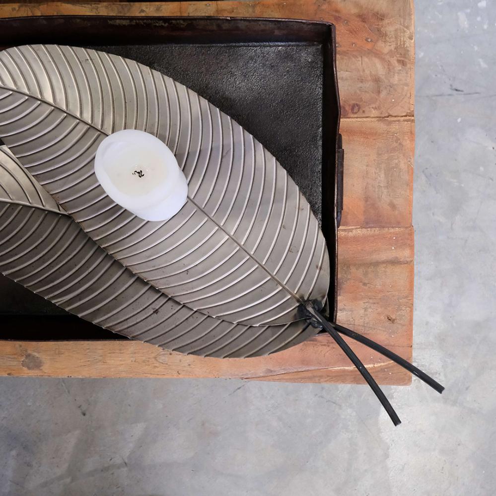 Stilfuld og dekorativt paradisblad i metal, der kombinerer råt håndværk med bladets naturlige, bløde former. De smukt markerede åretegninger giver bladet et levende og organisk udtryk, som skaber en flot kontrast til metallets kølige og industrielle karakter. Bladet kan stå alene i en høj vase eller krukke, hvor det vil fungere som et markant blikfang, eller kombineres med andre metalblade og evighedsblomster for at skabe en spændende og kunstnerisk dekoration. Perfekt til dig, der ønsker at give din indretning et moderne twist med naturinspiration i et råt materiale.