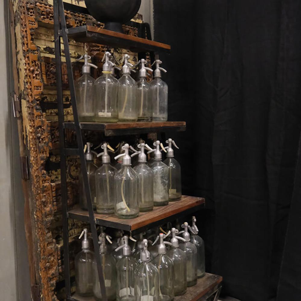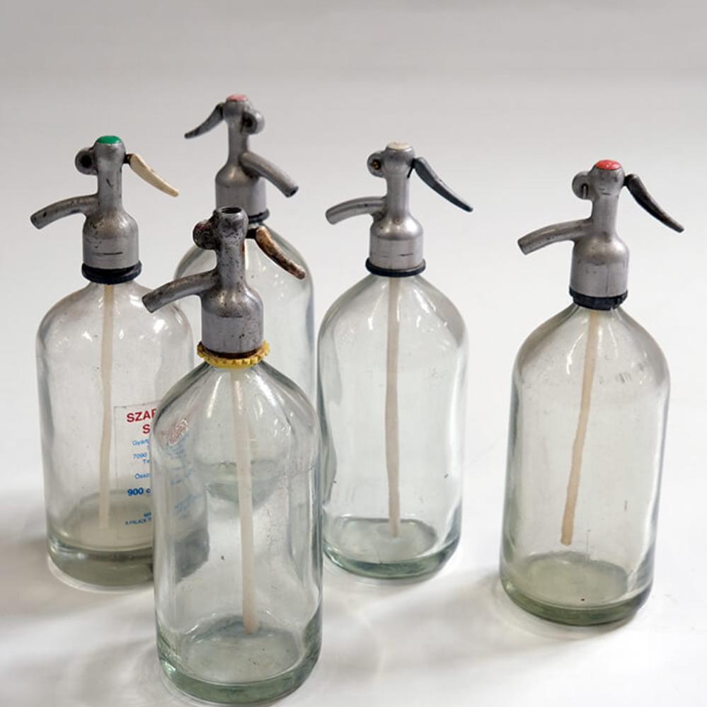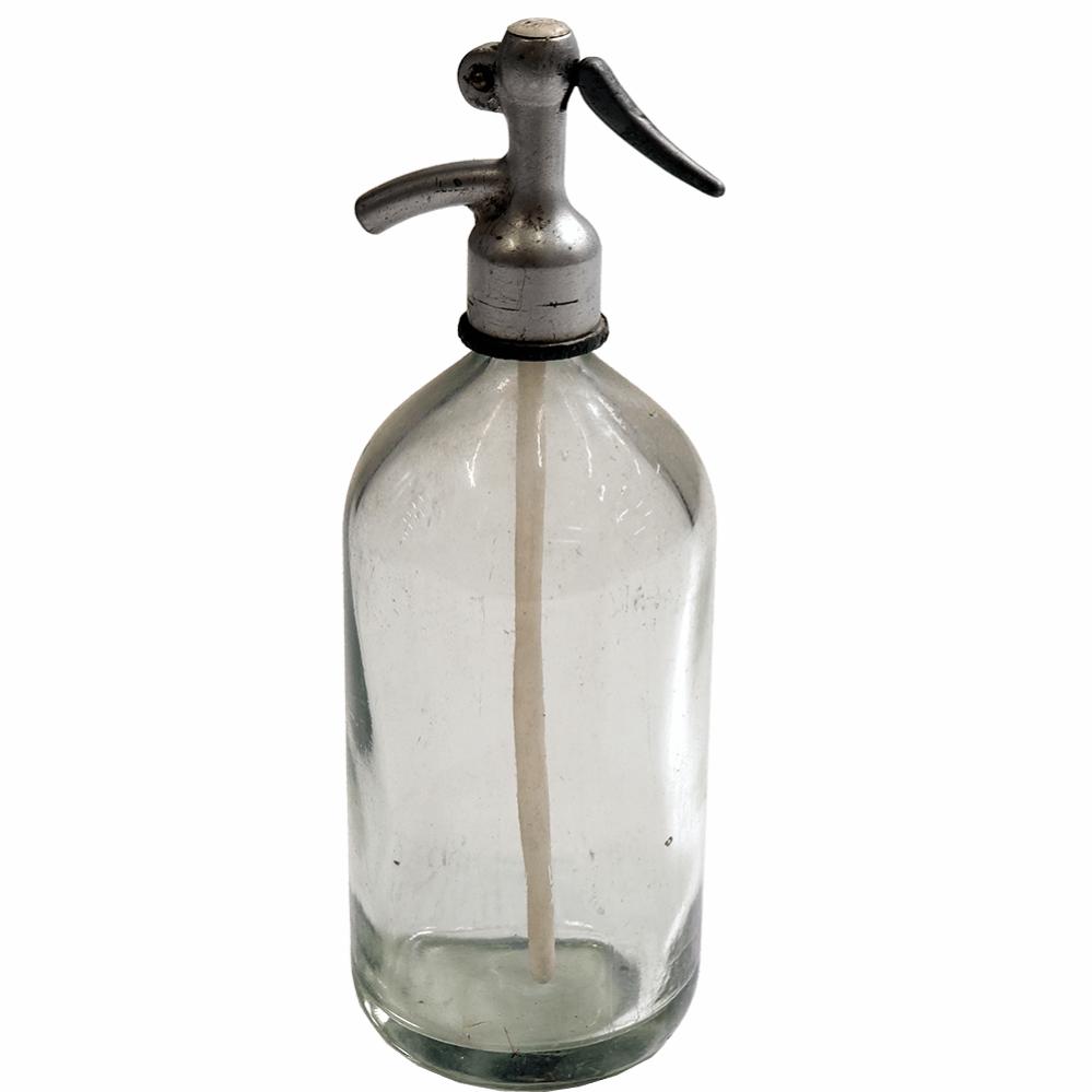 En smuk gammel sifon flaske i klar glas. I starten af 1900-tallet kom de første glas sifonflasker og de blev hurtigt meget populære og fandtes på enhver restaurant og bistro. Flaskerne havde deres storhedstid i 1920’erne og 30’erne. Sifonflaskens funktion og berettigelse var at det blev væsentligt lettere end tidligere at lave drikkevarer med brus i. Fra at have været forbeholdt de få, blev der lige pludselig et stort kommercielt marked for drikkevarer med brus. Og med sifonflaskens indtog var man i stand til at holde på bruset, så drikkevarerne ikke straks blev ”flade”. Selve sifonflaskerne blev produceret i Tjekkoslovakiet. Dette skyldtes, at der var meget høje krav til glassets tykkelse og kvalitet, da de risikerede at eksplodere på grund af det høje tryk inde i flasken. Graveringerne og blyhovedet på flasken blev lavet i Frankrig.
