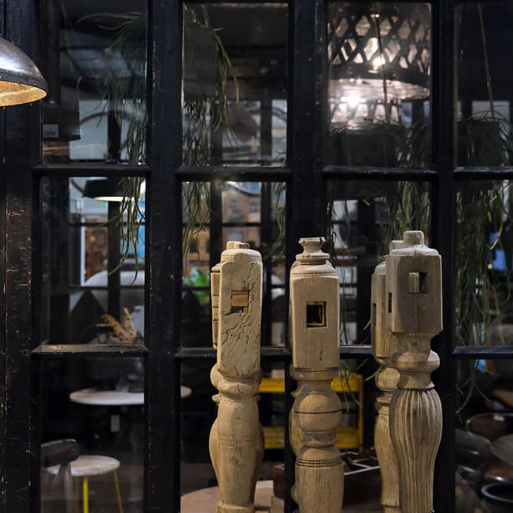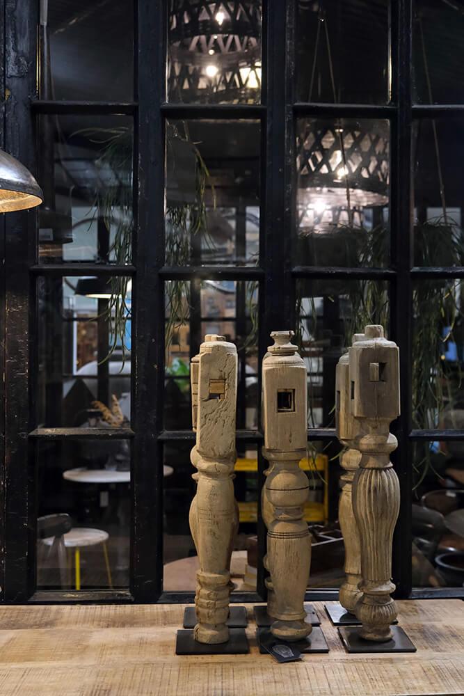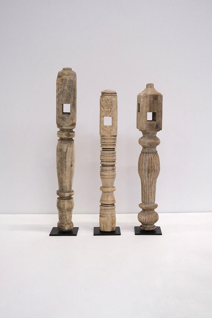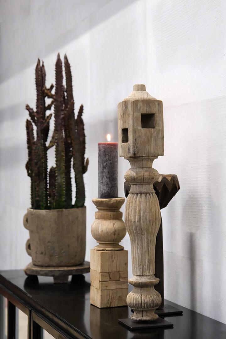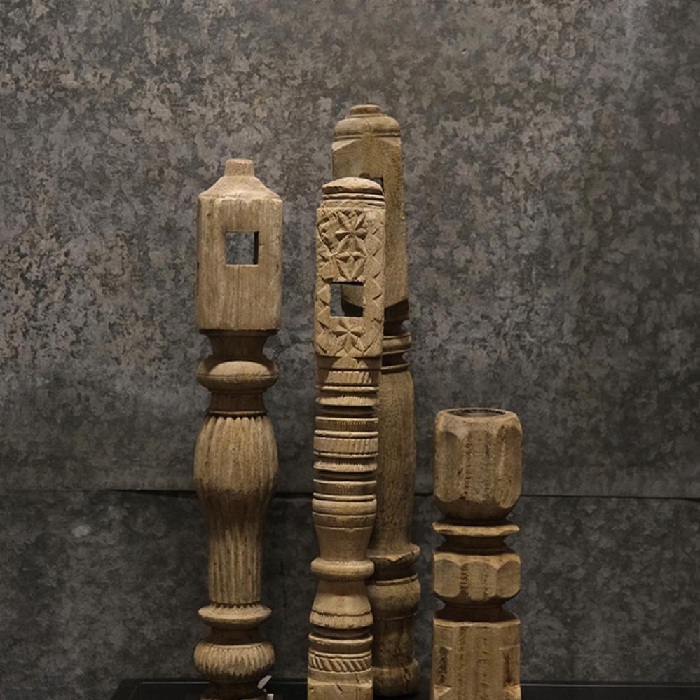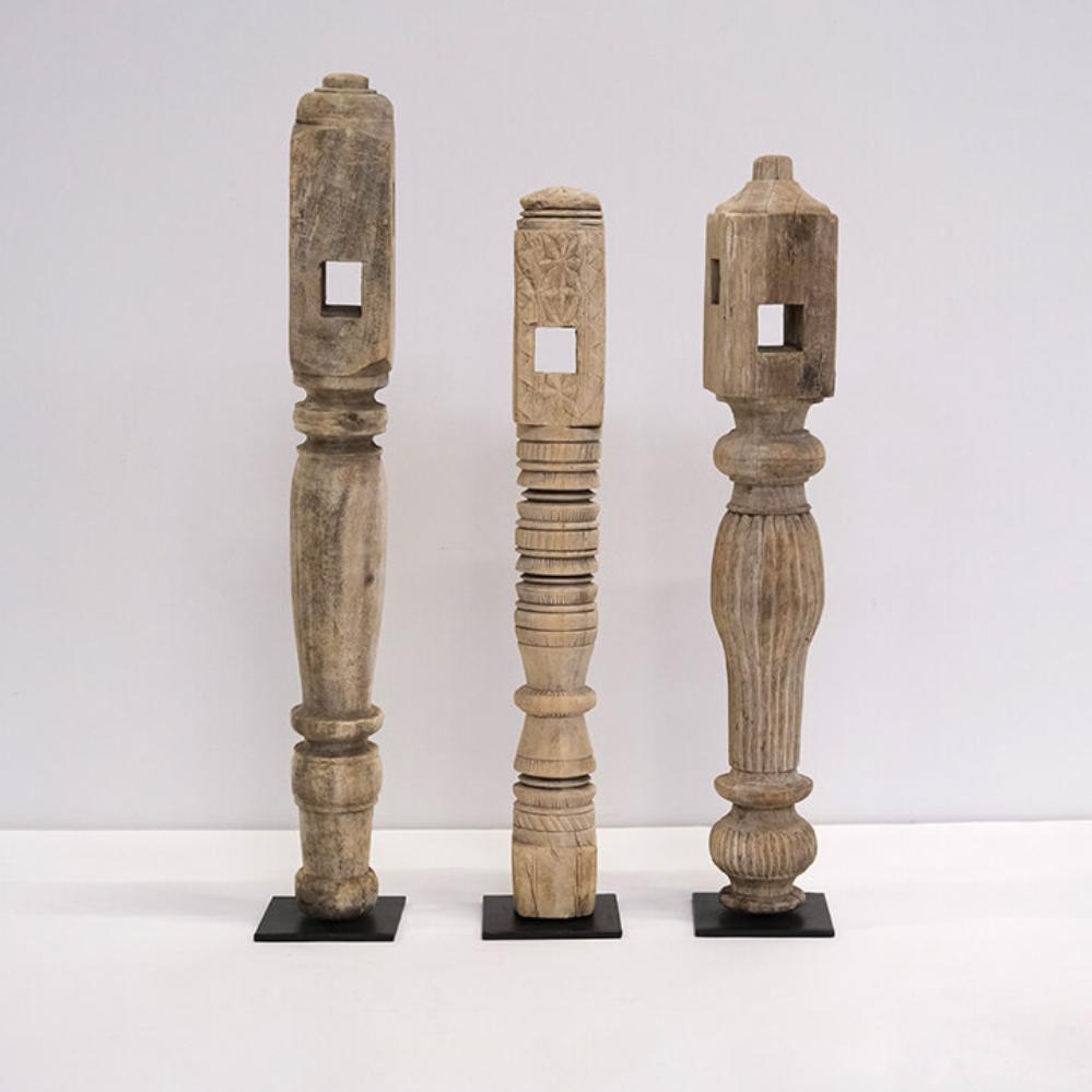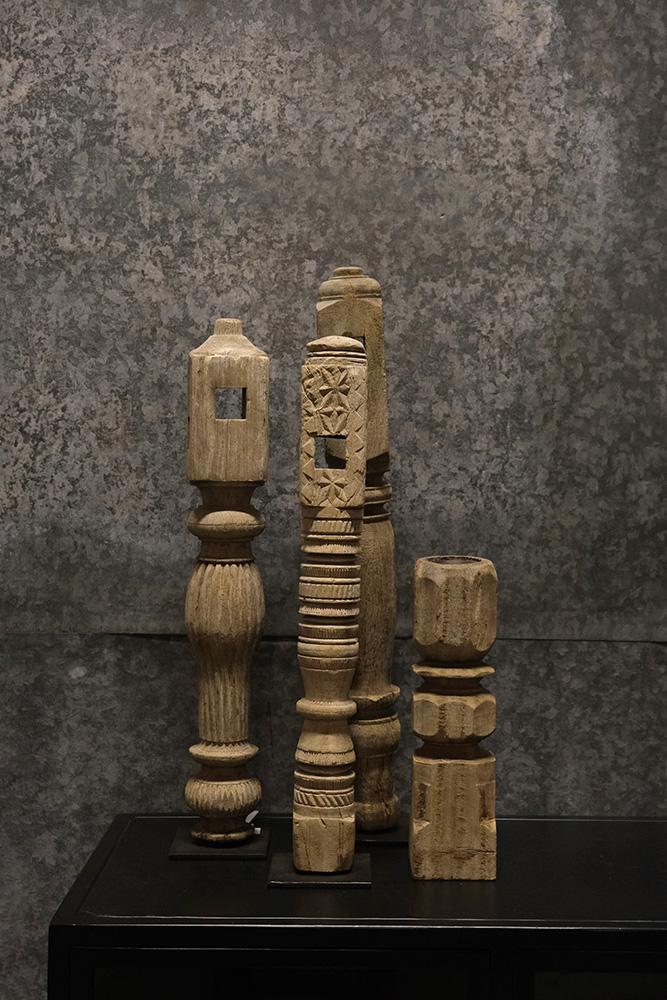Skøn og charmerende genbrug ses her i form af gamle bordben, der er sat på en metal plade. En virkelig fin, dekorativ og personlig skulptur der vil give stemning og atmosfære i din indretning. Lad træskulpturen pynte på bordet, på gulvet eller i vindueskarmen. Skulpturen er helt fantastisk i sig selv, men vil du skabe woweffekt, så gælder det, at jo flere sammen jo større effekt.