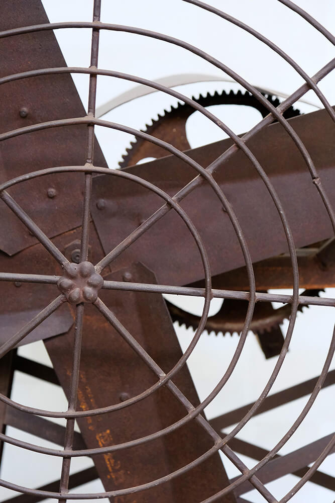 Rustik, gammel landbrugsventilator med håndsving i rustet jern med masser af charme og patina. Den har tidligere været brugt til at tørre korn med i det indiske landbrug, og kan nu bruges som en virkelig sjov og anderledes eyecatcher i din indretning. Stil den på gulvet eller hæng den op i en wire, for at skabe en rigtig WOW effekt.