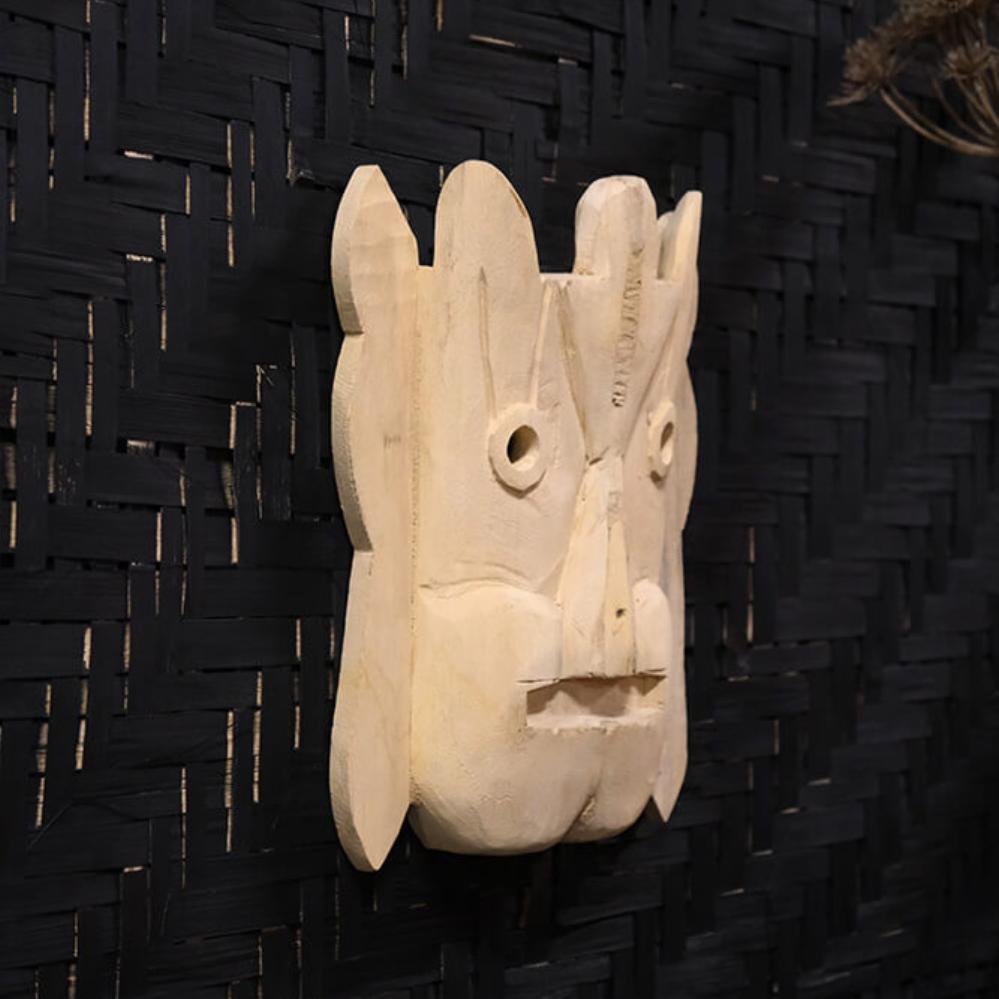 En super cool træmaske med fine detaljer. Brug masken som en sjov og anderledes vægdekoration og tilfør noget humor til din indretning. Maskerne har en lille "hylde", så der er mulighed for at udsmykke dem med små miniplanter eller en lille lysestage eller vase. Bemærk at maskerne varierer meget i træets struktur.