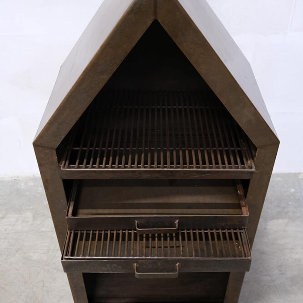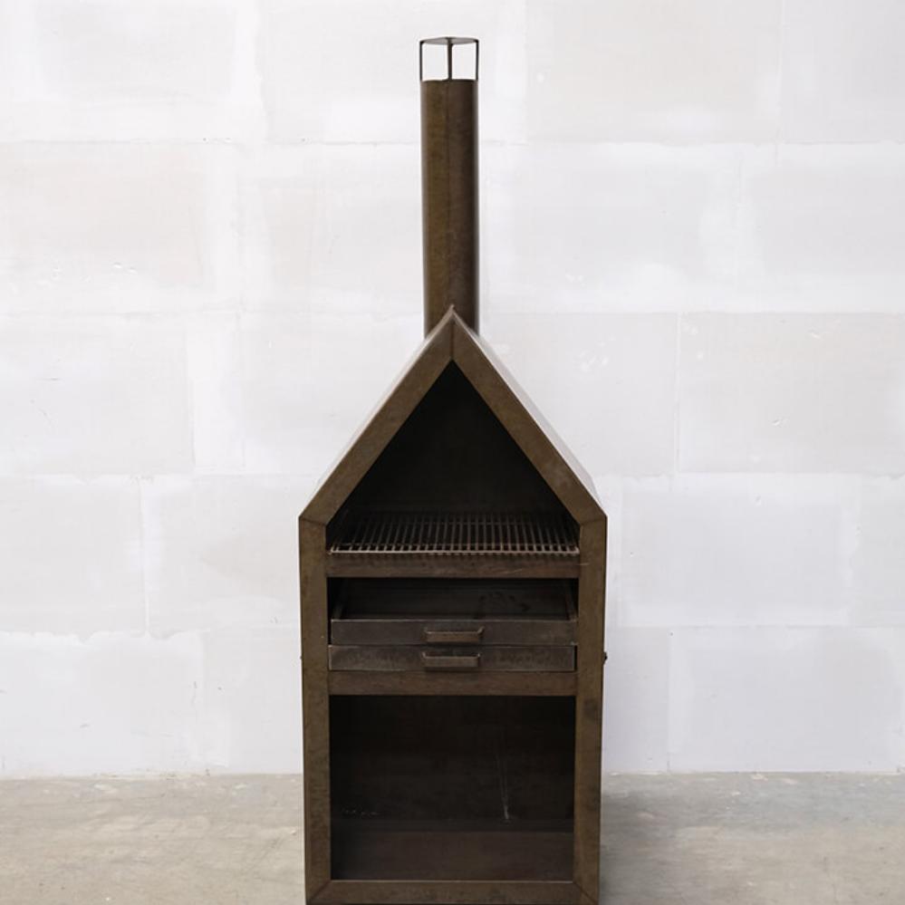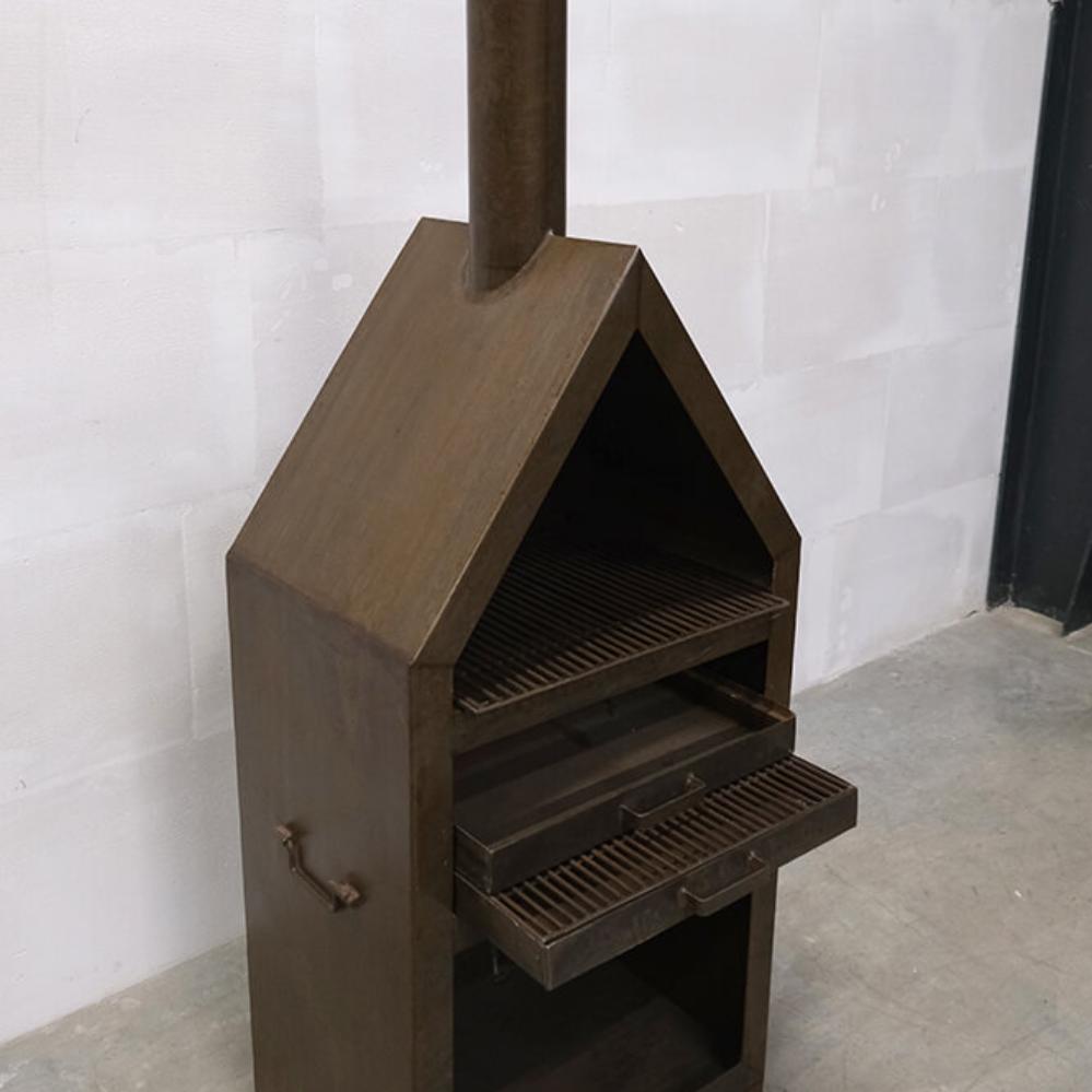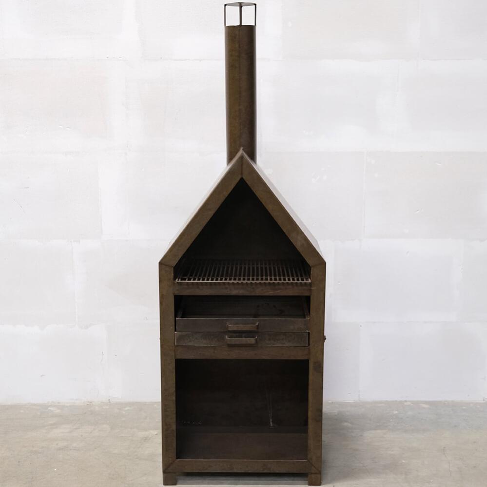 Denne udendørs jernovn er den ultimative kombination af funktion og rå stil. Med sit huslignende udtryk og rustikke overflade bringer den både varme og karakter til enhver terrasse eller have. Jernovnen kan bruges både som grill og pejs, har rist og 2 bakker, og den er med integreret brændeholder. Placer den i midten af din udendørs lounge i restauranten, så dine gæster kan samles omkring varmen og hygge sig. Eller brug den derhjemme til at skabe en rå, hyggelig atmosfære på terrassen – perfekt til at grille en steak eller holde gang i bålet. Med denne ovn får du både funktionalitet og en havepejs med grill, der skiller sig ud!