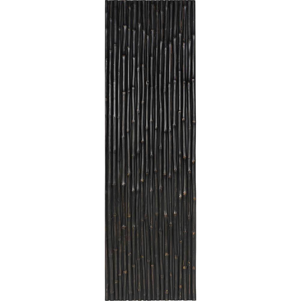 Denne vægplade er beklædt med sorte bambusrør, hvilket giver den et grafisk og dramatisk udtryk. De mørke bambusrør er halveret og sat tæt sammen og skaber en stilfuld struktur med et moderne touch. Bambussens naturlige tekstur og ujævnheder er stadig tydelige på trods af farven, hvilket giver pladen et interessant visuelt spil af lys og skygge. Denne vægplade vil være perfekt i en indretning, der søger et minimalistisk, men alligevel eksotisk og raffineret dybde i indretningen. Den sorte farve gør den velegnet til både moderne og industrielle miljøer, hvor den kan fungere som bagvæg eller dekorativt panel.