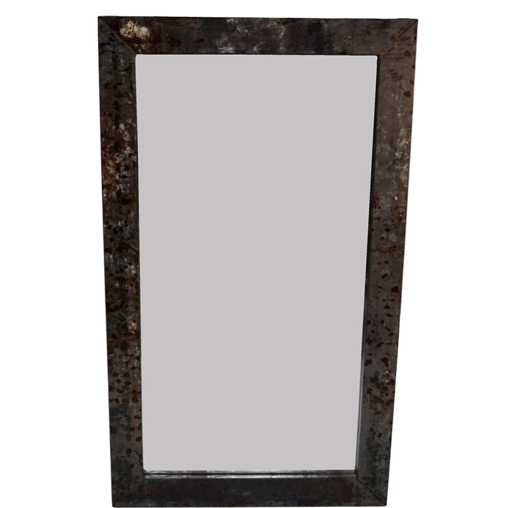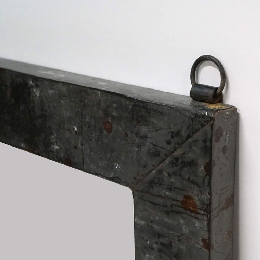 Råt spejl til væggen med en bred jernramme med en rustik patina. Dette store spejl kan bruges i hvilket som helst rum - soveværelse, entré eller garderobe, hvor det er mest praktisk at have et stort væghængt spejl frem for et gulvspejl.