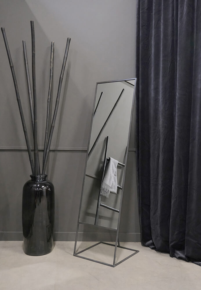 Giv din indretning en rå og industriel twist med et Jesse gulvspejl. Jernstativet giver spejlet stabilitet og et minimalistisk udtryk, mens det store spejl reflekterer lyset og åbner rummet. Lad dette spejl være et markant element i din indretning, der udstråler rå charme og stil.
