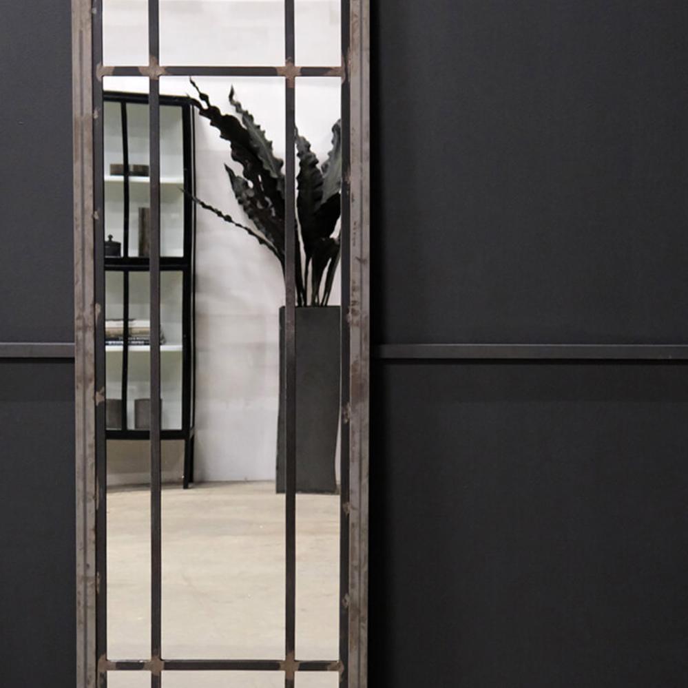 Er du på udkig efter et enkelt råt spejl i New Yorker look, så er det lige her. Spejlet er indrammet af en pulverlakeret jernramme med sprosser, og er designet i en minimalistisk og dekorativ stil. Spejlet kan både stå på gulvet eller hænges op på væggen og vil helt sikkert give din indretning noget kant.