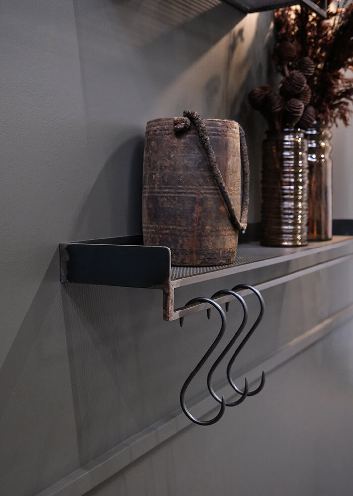 En enkel, men uundværlig S-krog i sort jern. Den solide konstruktion gør den ideel til både praktisk opbevaring og dekorative ophæng. Brug den i garderoben, køkkenet eller værkstedet – mulighederne er mange. Findes i størrelserne small og large.