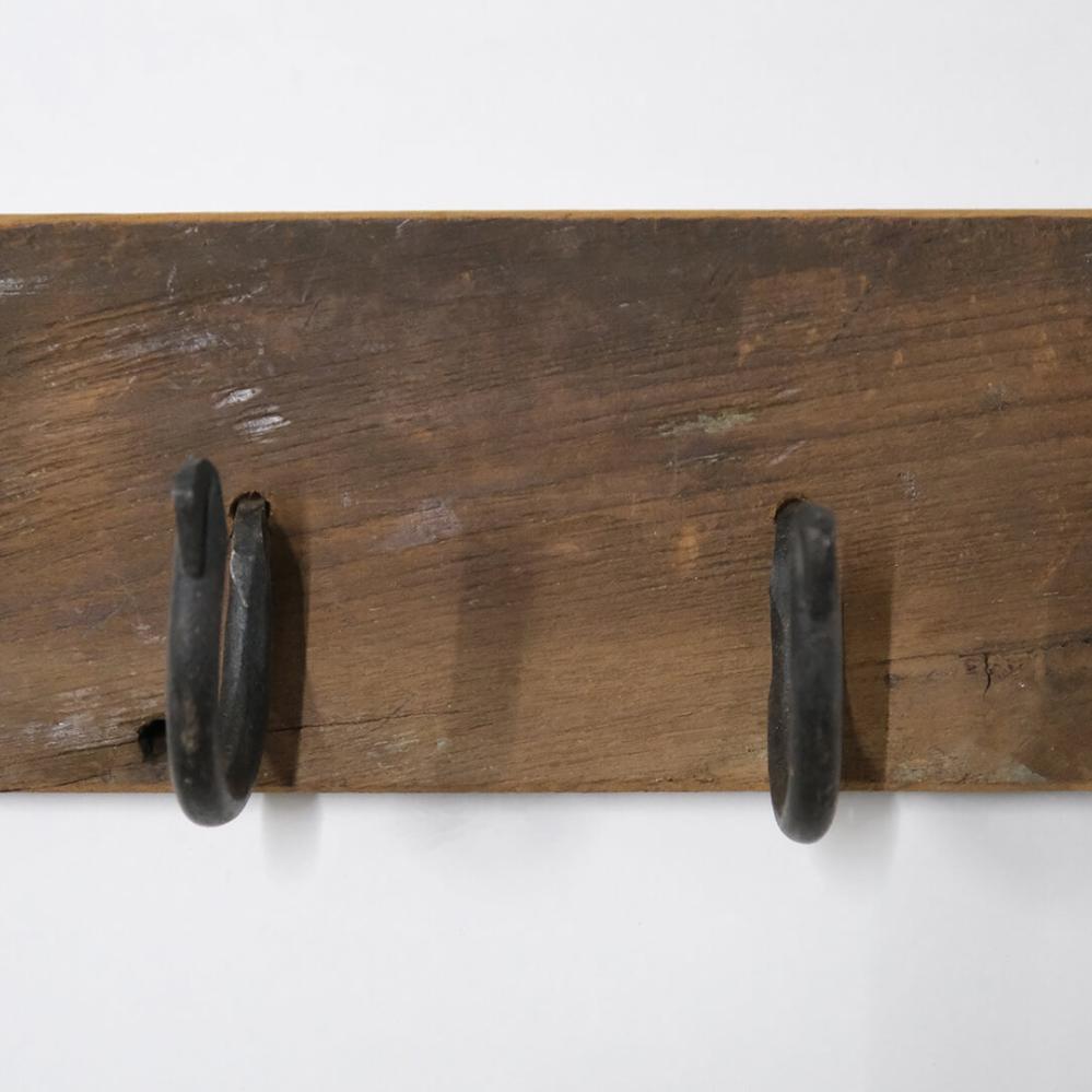 Knage i genanvendt træ med to jernkroge. Knagerækken har 2 beslag til ophæng. Hæng en knagerække op i entréen til overtøj eller tasker, i soveværelset til morgenkåben, i køkkenet til viskestykker eller på badeværelset til håndklæder. Knagerækken har et udtryk, som passer rigtig godt til den nordiske stil.