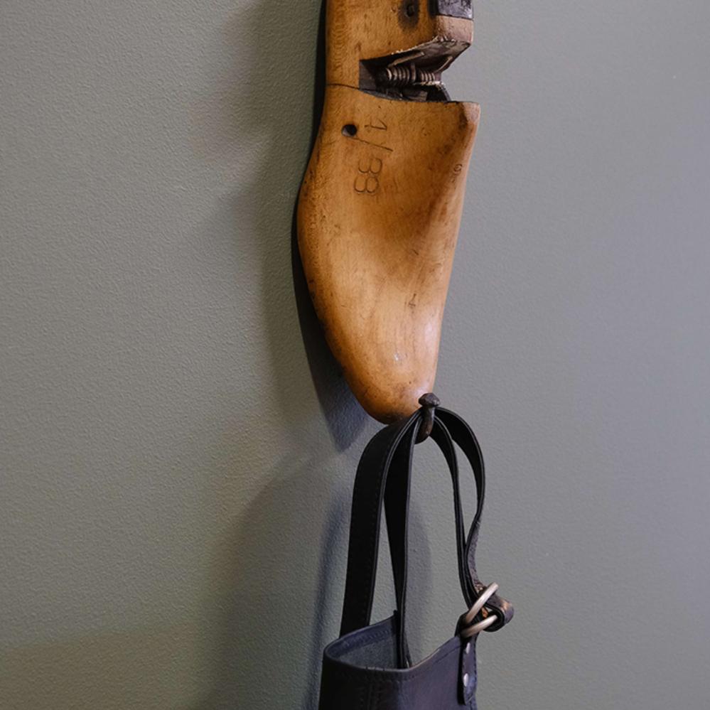 Her får du en iøjenfaldende og anderledes knage. Vi har taget en gammel skolæste og monteret en krog i spidsen, og vupti så har du en knage. Krogen er velegnet til at hænge tørklæder og accessories på. Disse gamle skolæster har tidligere været brugt i fremstillingen af sko. I dag bruges ofte læster af plastik, fordi det i modsætning til træ ikke påvirkes af fugtighed og derfor bevarer sin form. Denne knage er det perfekte valg, hvis du er fan af naturlige materialer og gerne vil have en naturlig og rustik indretning.