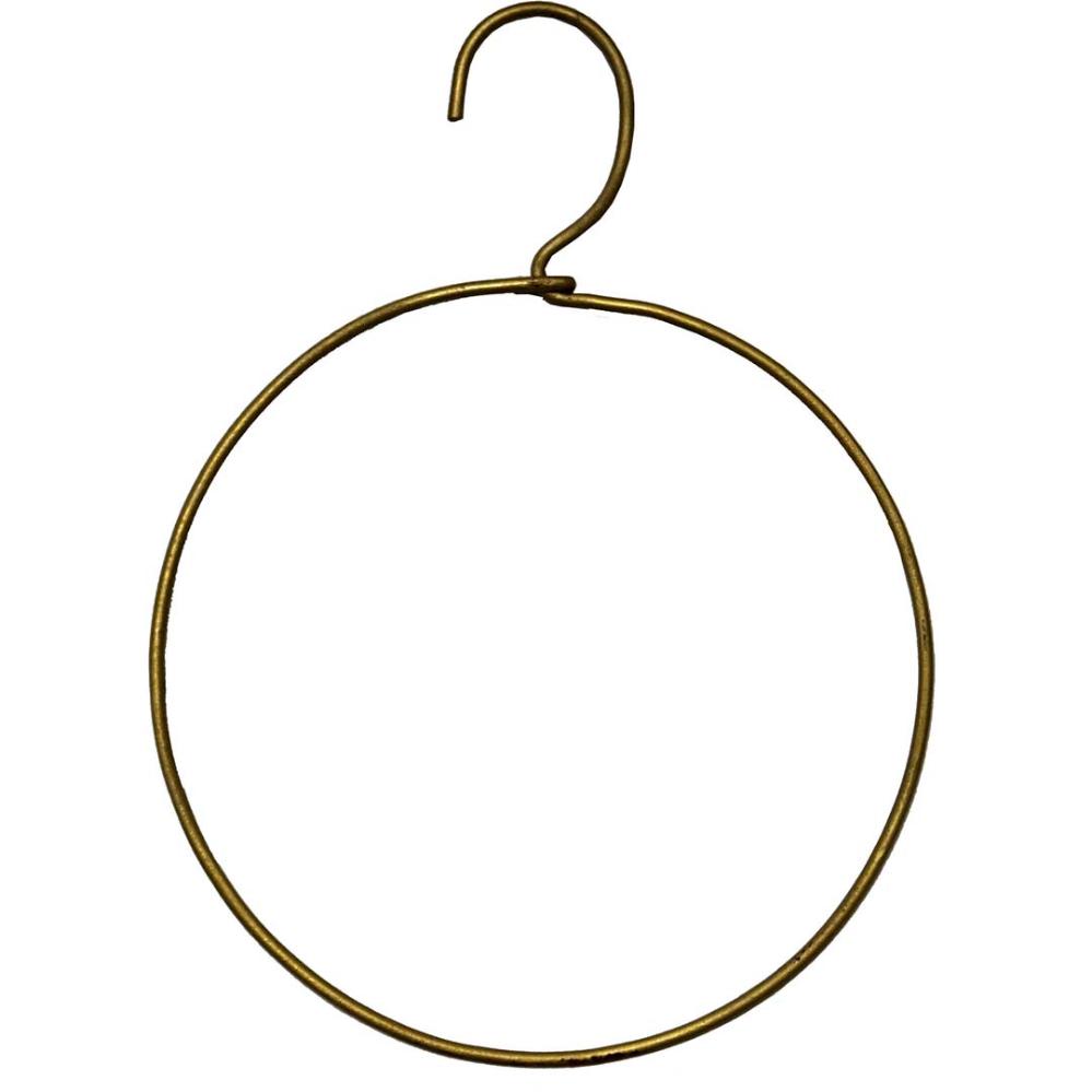 Den tynde ovale bøjle i messingfarvet metal er bukket i ét stykke og har et let, industrielt udtryk. Den fylder minimalt og er perfekt til tørklæder, bælter eller håndklæder. Brug den i garderoben, på badeværelset – eller som en kreativ base til blomsterbinderi med friske eller tørrede grene og blomster. Et alsidigt og stilrent ophæng, der både kan bruges praktisk og dekorativt.