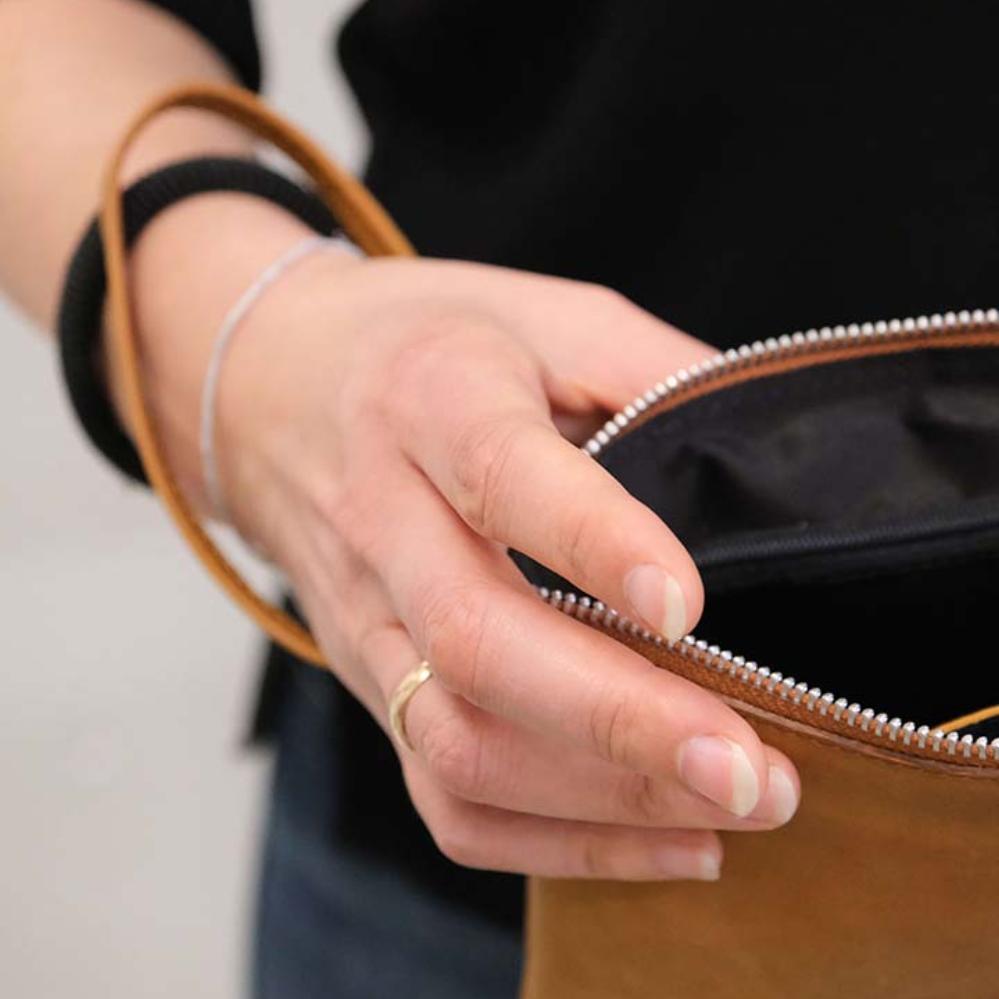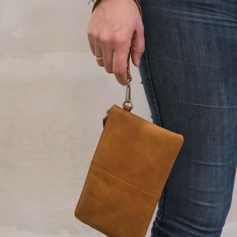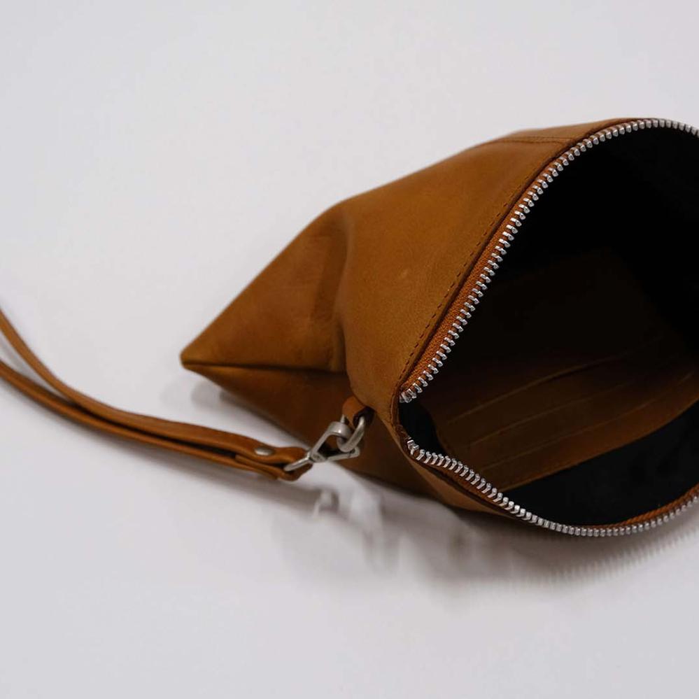 Enkelt lækker clutch i brunt læder med aftagelig læderstop. Lukkes med lynlås. Der er indvendig lynlåslomme og 3 lommer til kreditkort. Denne stilrene clutch har mange anvendelsesmuligheder. Nogen bruger den som en ekstra lille taske, som pung, til din mobiltelefonen eller til noget helt andet. Kun fantasien sætter grænsen.