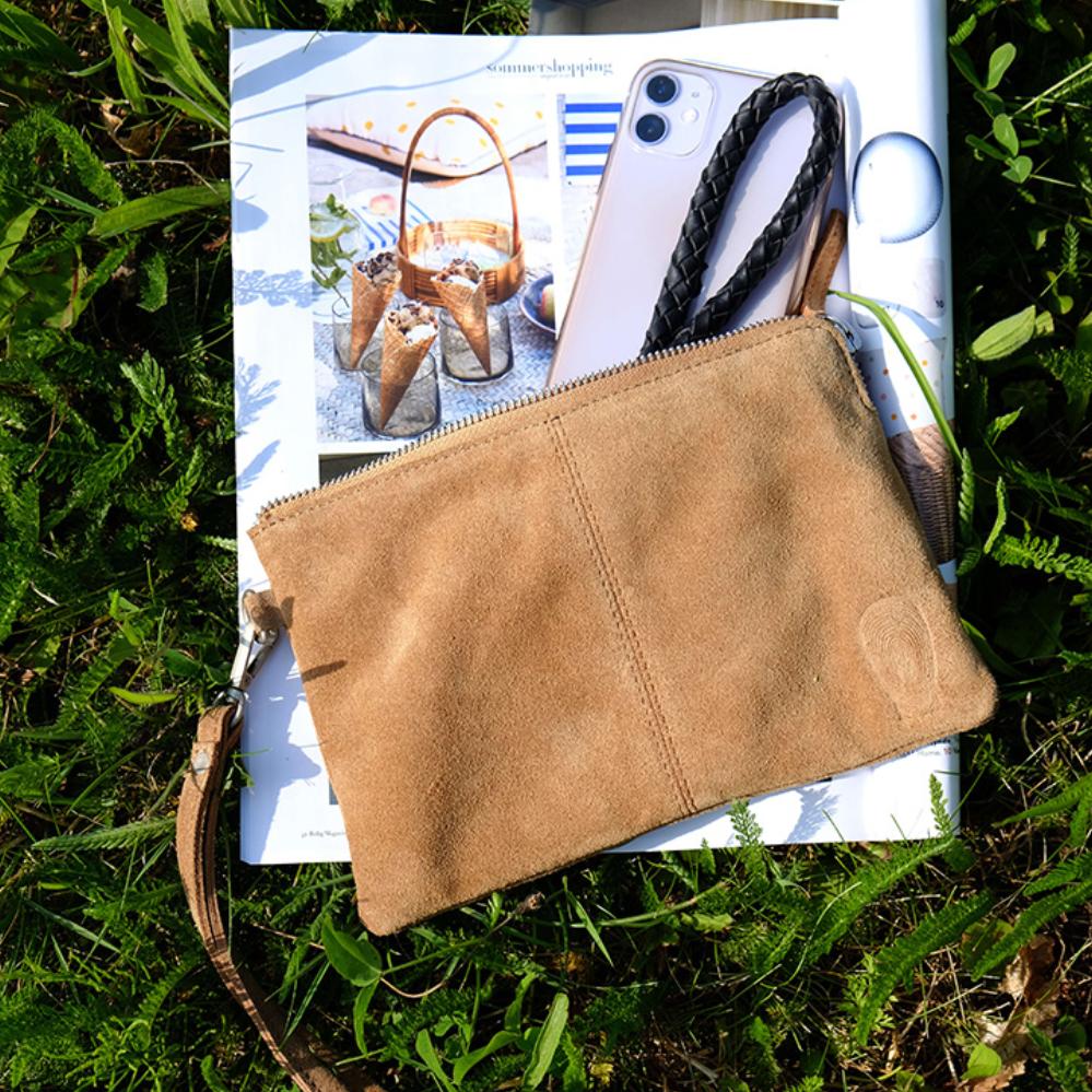 Clutch i lækkert blødt ruskind, som er perfekt til både hverdag og enhver festlig lejlighed. Clutchen har en indvendig lynlåslomme, separat kreditkortlommer til tre kort og lukkes med en lynlås. Den medfølgende håndledsrem kan tages af. Brug tasken som en lille ekstra taske når du er på farten til hverdag, som pung eller som en festlig accessory. Clutchen fås i to farver i ruskind og to farver i læder.