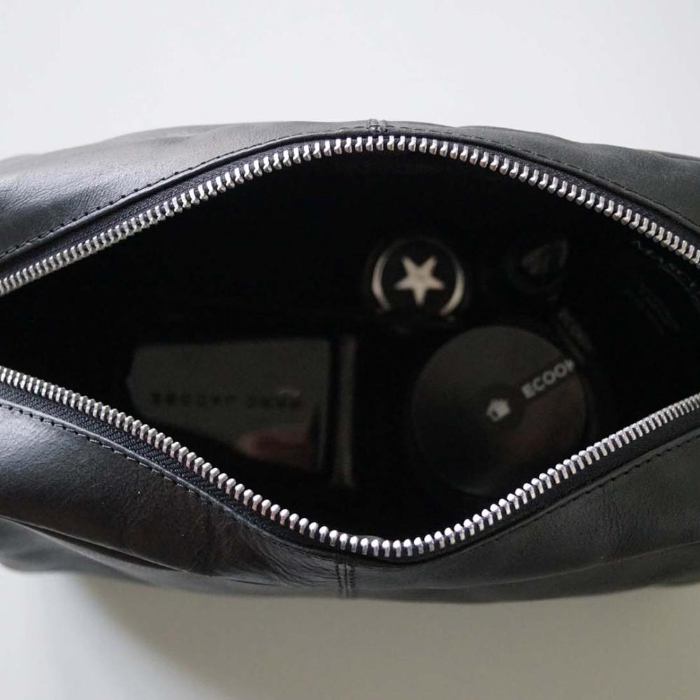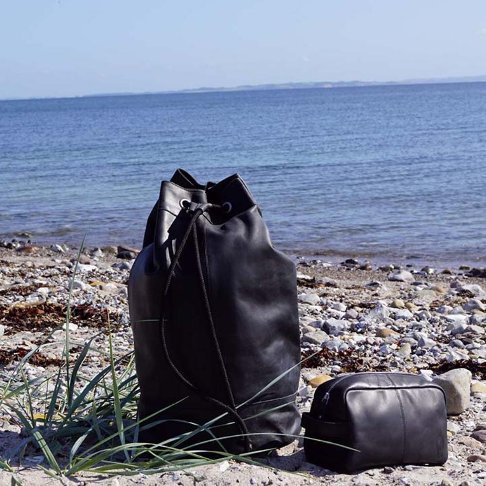 Toilettaske med et klassisk og stilrent design, som er populært hos både mænd og kvinder. Toilettasken har et stort rum lukket med lynlås en mindre lomme og strop i enden. Tasken er i sort blødt bøffellæder, der kun bliver mere lækker og blød med årene.