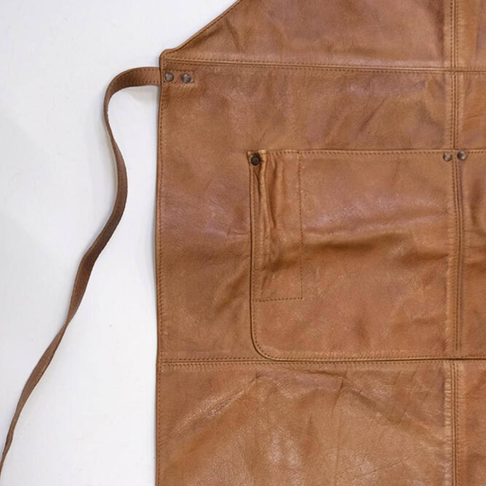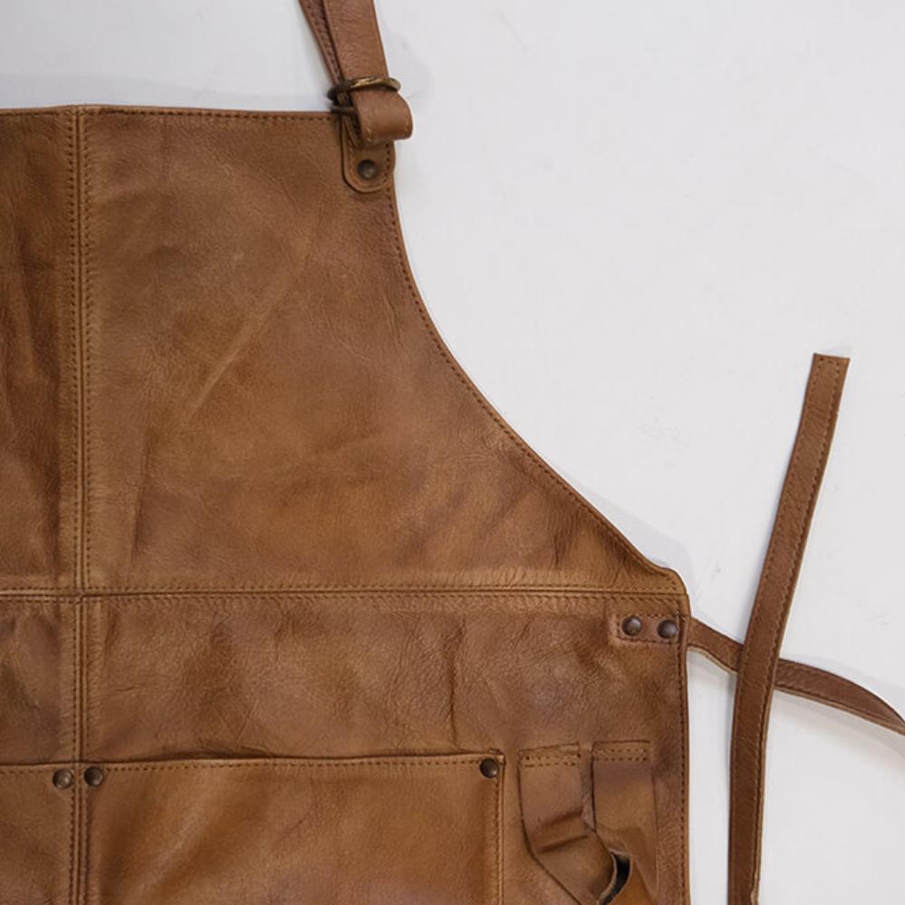 Dette forklæde i blødt bøffellæder kombinerer klasse og funktionalitet på bedste vis. Læderets naturlige charme og lækre brune farve giver forklædet et råt og autentisk udtryk, mens det bløde materiale sikrer komfort ved længere tids brug. Med praktiske lommer på forsiden kan du nemt have de nødvendige redskaber lige ved hånden, hvad end du bruger det til madlavning, håndværk eller andet arbejde. Forklædet har justerbare stropper om nakken og bindebånd i taljen, der sikre en perfekt pasform .