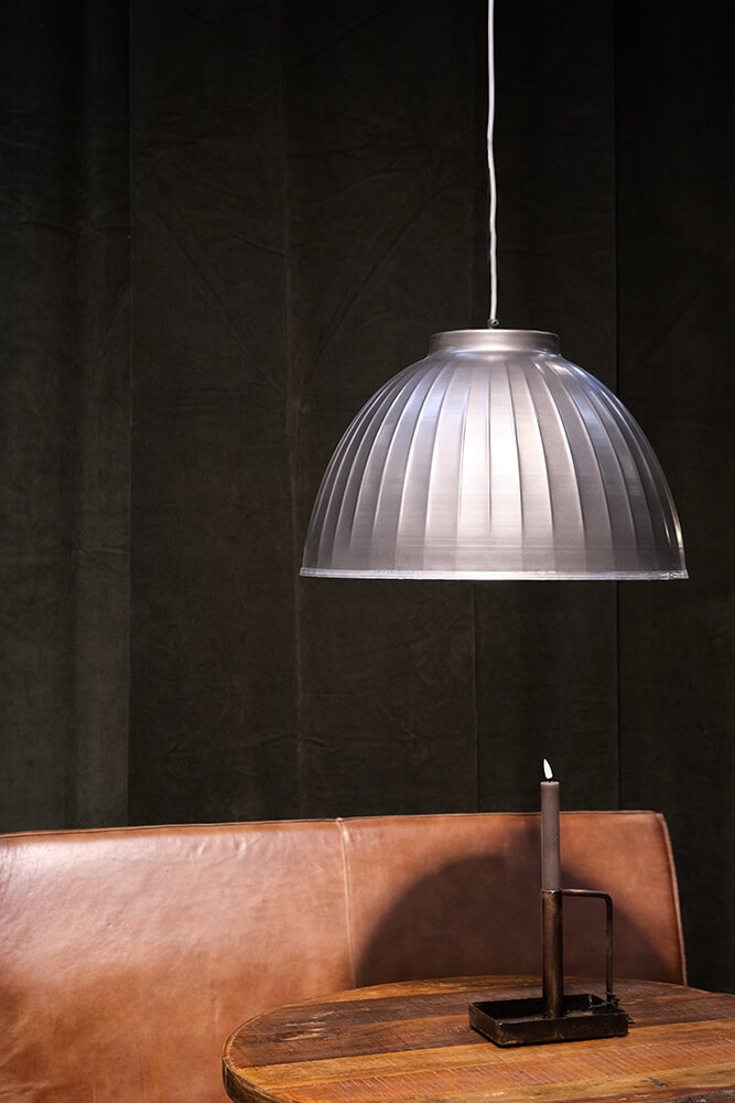 Fremhæv dit rum med vores loftlampe i gråmalet zink med riller. Denne elegante lampe kombinerer et enkel, industrielt inspireret design med raffinerede detaljer. De smukke riller i metallet tilføjer tekstur og karakter til lampens udseende. Hæng den op i dit hjem eller butik for at skabe en subtil belysning, der tilføjer rå elegance og stil til ethvert rum.