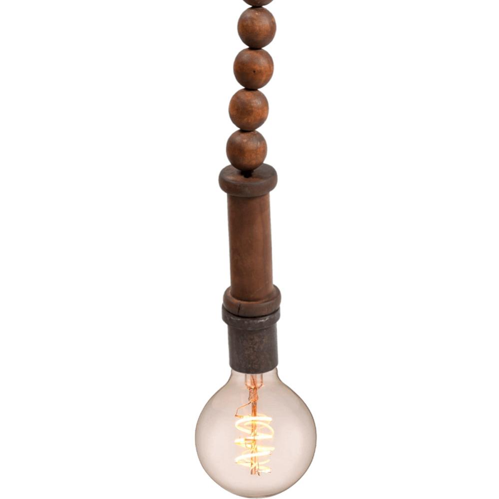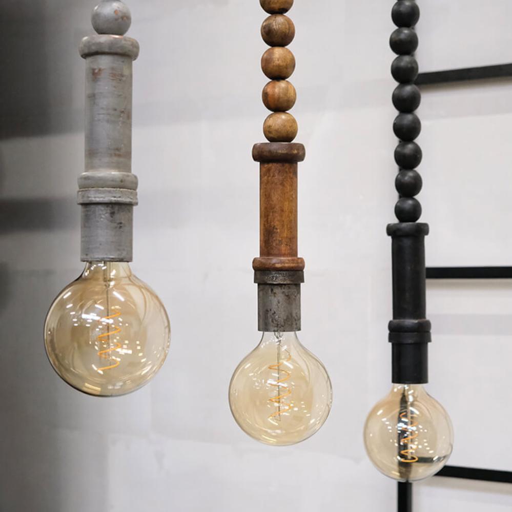 En lampe med masser af sjæl og historie. Bundstykket før fatningen er lavet af en gammel sytrådsspole, som tidligere har haft sin faste plads i en systue, nu er den forvandlet til en dekorativ detalje, der giver lampen et autentisk og unikt udtryk. Over spolen er der en række smukke træperler, der skaber en levende rytme og et varmt modspil til det rå industrielle præg fra fatningen. Hæng lampen over spisebordet, i en café eller som et stemningsfuldt indslag i stuen, og lad den fortælle sin historie gennem både lys og materialer. Tilføj en dekorativ pære for at understrege det personlige og unikke look. En lampe, der kombinerer genbrug, håndværk og design på den helt rigtige måde.