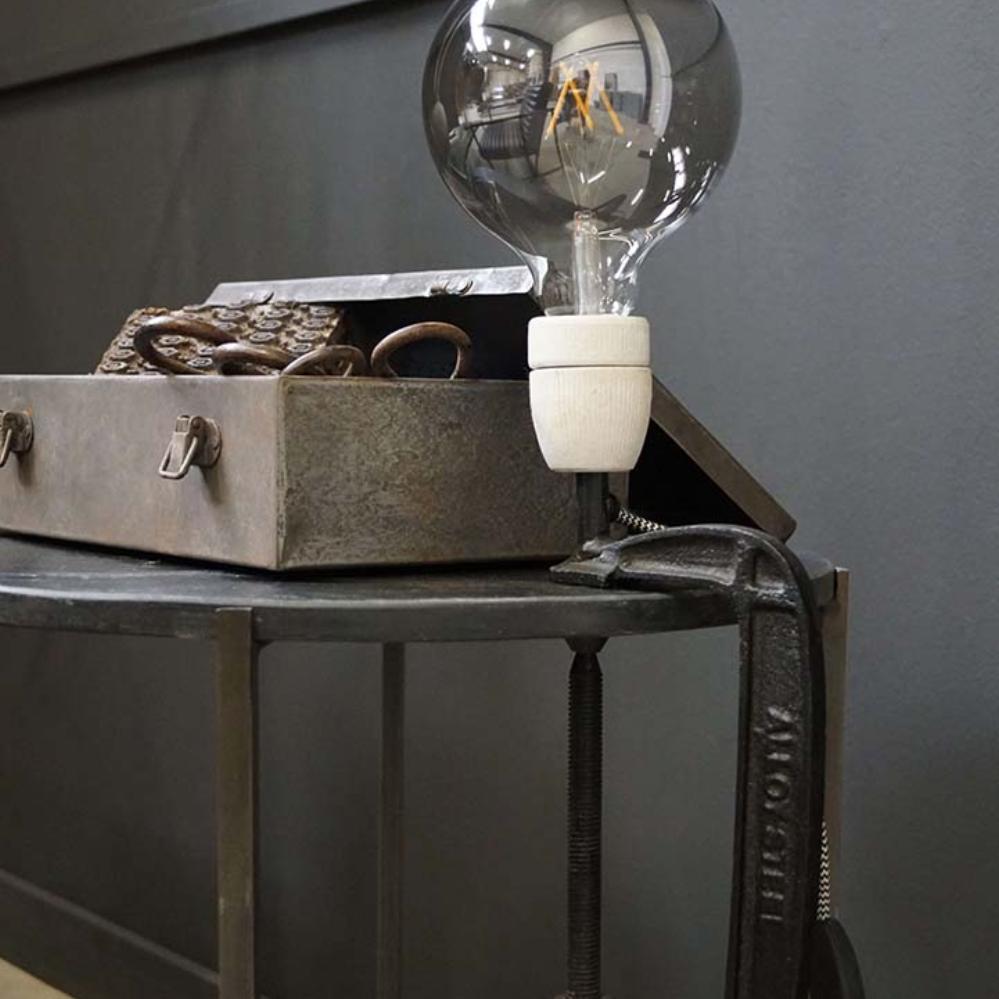 Upcycling kan bare noget helt særligt. Se bare denne Crowe bordlampe. Skabt af ’håndværkerens tredje hånd’, eller i daglig tale: en skruetvinge, er denne lampe anderledes og dekorativ i sit design, da gevindet tillader dig at placere den på alternative stedet i din restaurant, café eller dit hjem.