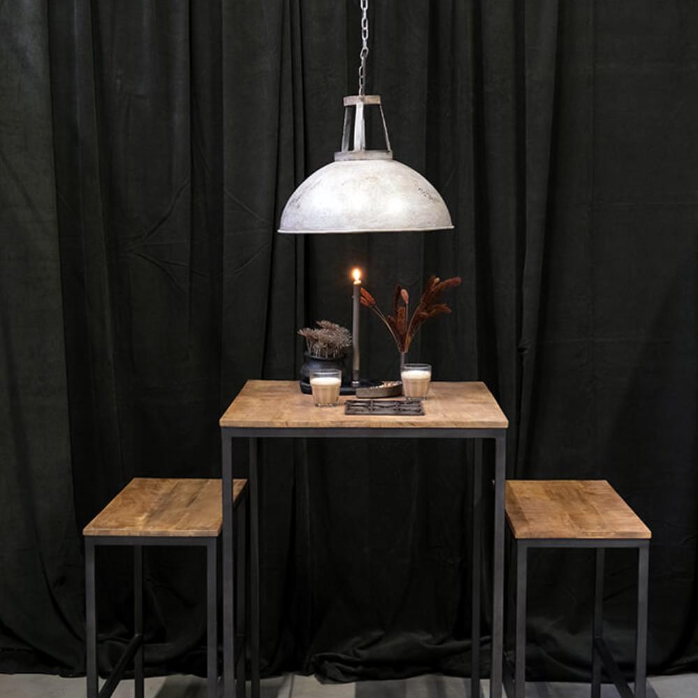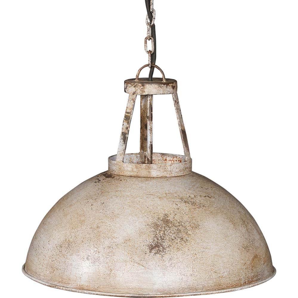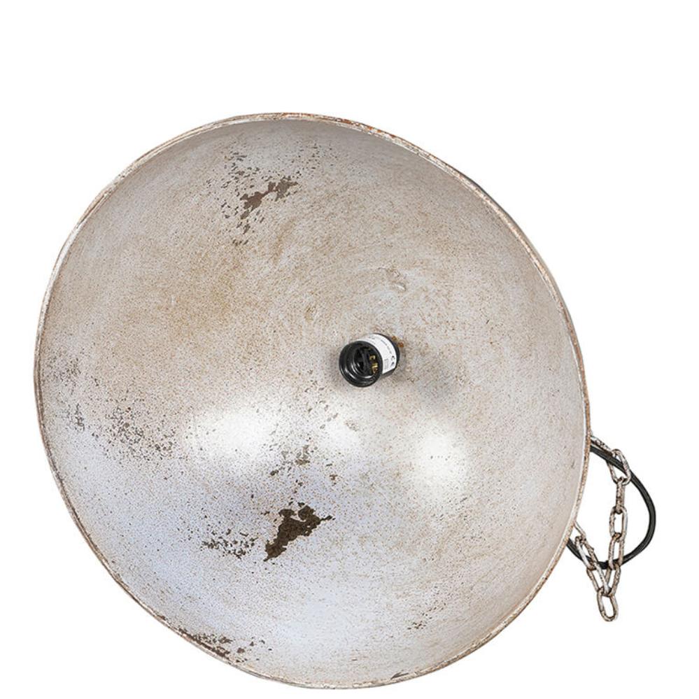Denne lampe har en rå og industriel charme med sin patinerede overflade og rustikke metalfinish. Den store, kuppelformede skærm sikrer et bredt og fokuseret lysudfald, hvilket gør den ideel til at skabe stemningsfuld belysning over spiseborde, arbejdsborde eller i større rum. Loftslampen har et kraftig kædeophæng, der understreger det robuste design og tilfører en autentisk vintage-fornemmelse, perfekt til indretninger, der værdsætter industrielt præg og et råt udtryk.
