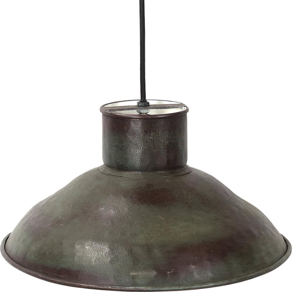 Denne loftslampe skiller sig ud med sin dybe mørkegrønne farve og rå finish, som giver et fabriksinspireret look. Lampen er fremstillet i jern og har en robust form, der både fungerer som enkeltstående belysning eller i kombination med flere lamper på række. Den grønne tone tilfører varme og personlighed til indretningen og passer perfekt i køkken, spisestue eller caféer, hvor der ønskes en afslappet og industriel stemning. Lampen findes også i en mindre udgave, se efter M08363 i webshoppen.