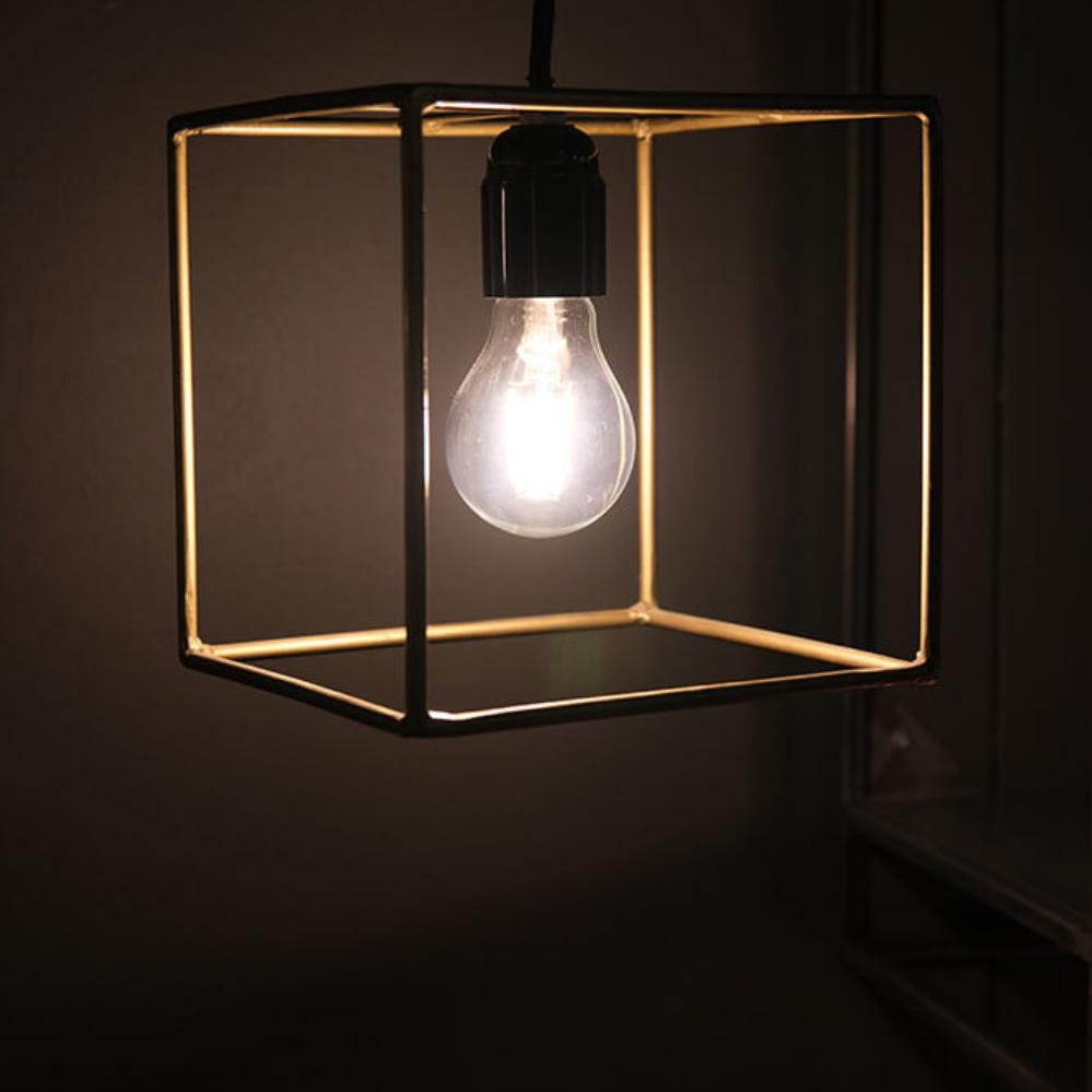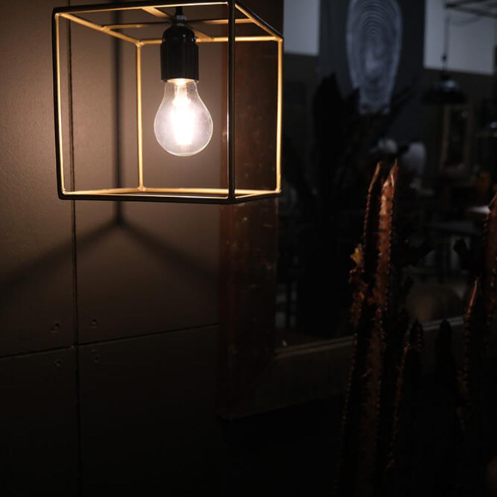 Firkantet hængelampe i messing. Stilren og flot lyskilde