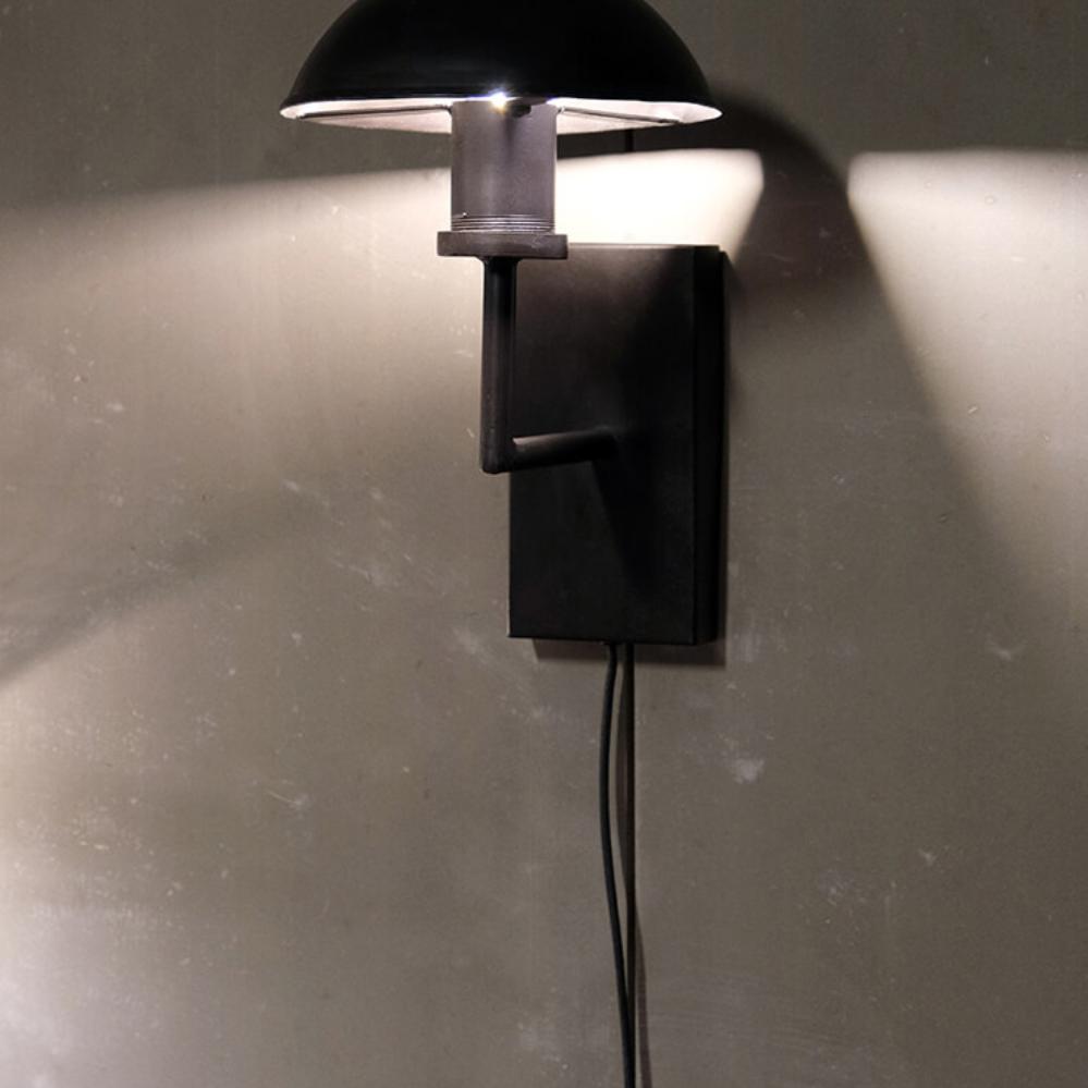 Denne væglampe i mørkt jern udstråler enkelhed og robust stil. Med sin kompakte konstruktion og den fine, buede skærm er den perfekt til at skabe hyggelig belysning i ethvert rum. Lampen har et minimalistisk, industrielt design, der passer godt til moderne og rå indretninger. Den er ideel som læselampe eller stemningsbelysning i soveværelset, stuen eller gangen. For et gennemført look kan du kombinere væglampen med de matchende bordlamper i samme serie, som findes i to forskellige størrelser.(M08226 og M08390)