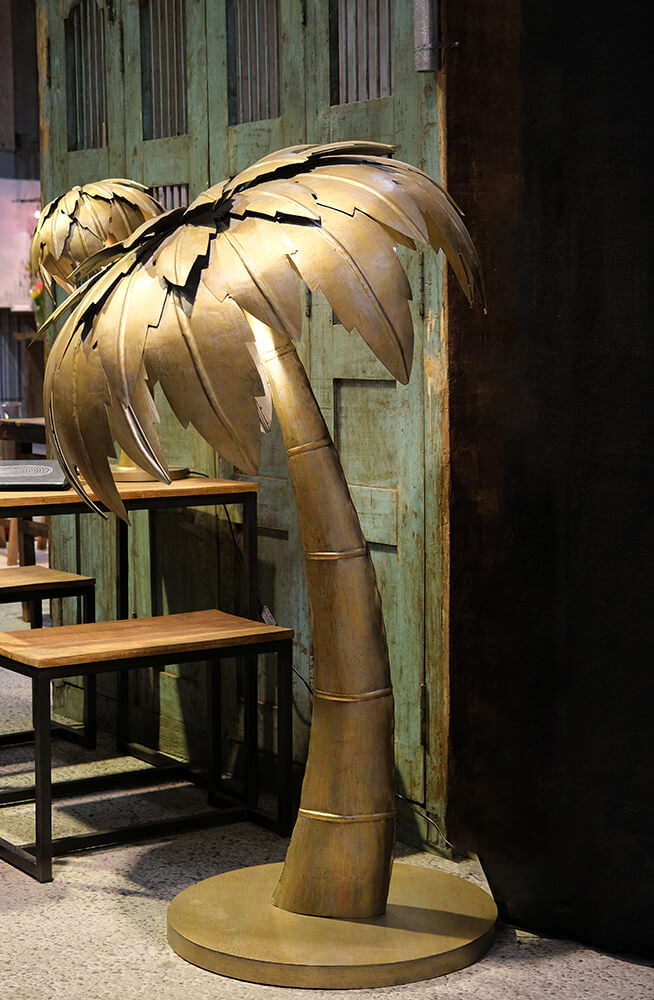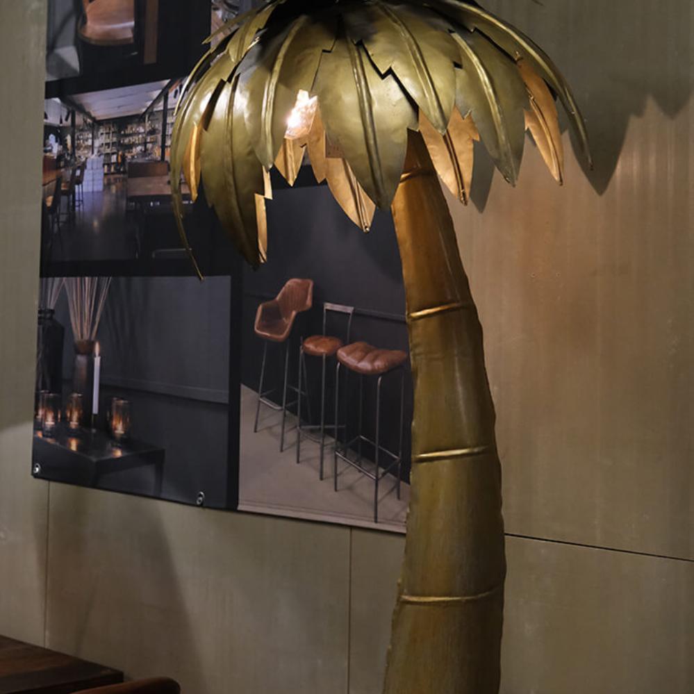 Præsenterer her vores imponerende palme gulvlampe! Denne unikke lampe er en ægte blikfanger og et dekorativt statement-piece, der vil bringe et strejf af tropisk charme ind i din indretning. Med sin smukke palmeform og bløde belysning skaber den en beroligende atmosfære og en følelse af ferieånd. Vores palme gulvlampe er det perfekte valg til at tilføje en eksotisk og stilfuld touch til din indretning. Gør dit rum til en oase af ro og elegance med denne smukke og anderledes lampe. Bemærk at lampen kan være en bestillingsvare.
