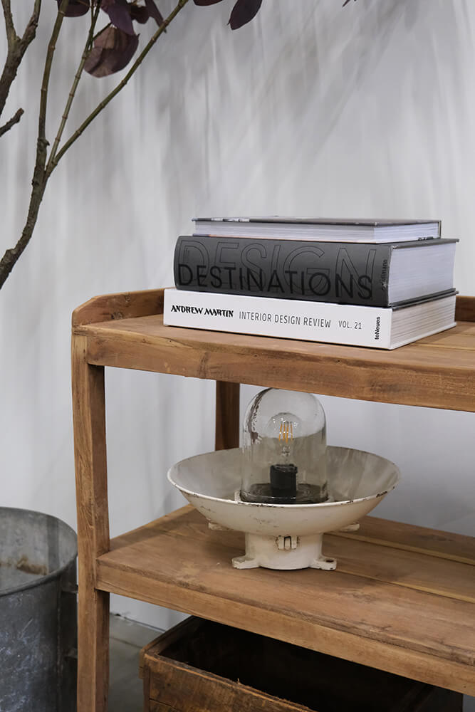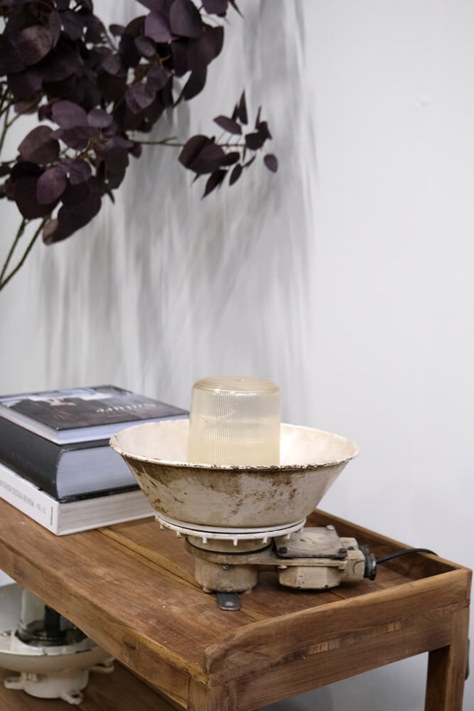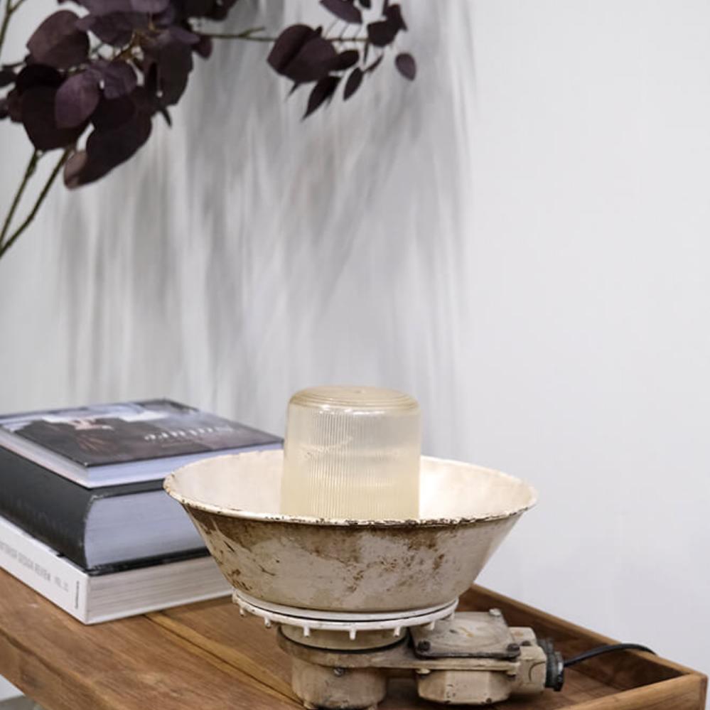 Gammel skibslampe med den skønneste patina. Skibslampen har en fin skærm bag den smukke kuppel, der vil kaste lyset ud i rummet. Bordlampen har et rustikt vintagelook, som samtidig fremstår råt og industrielt. Brug den til at sprede stemning i hyggehjørnet, i butikken, i restauranten eller hjemme hos dig selv. Du bestemmer.