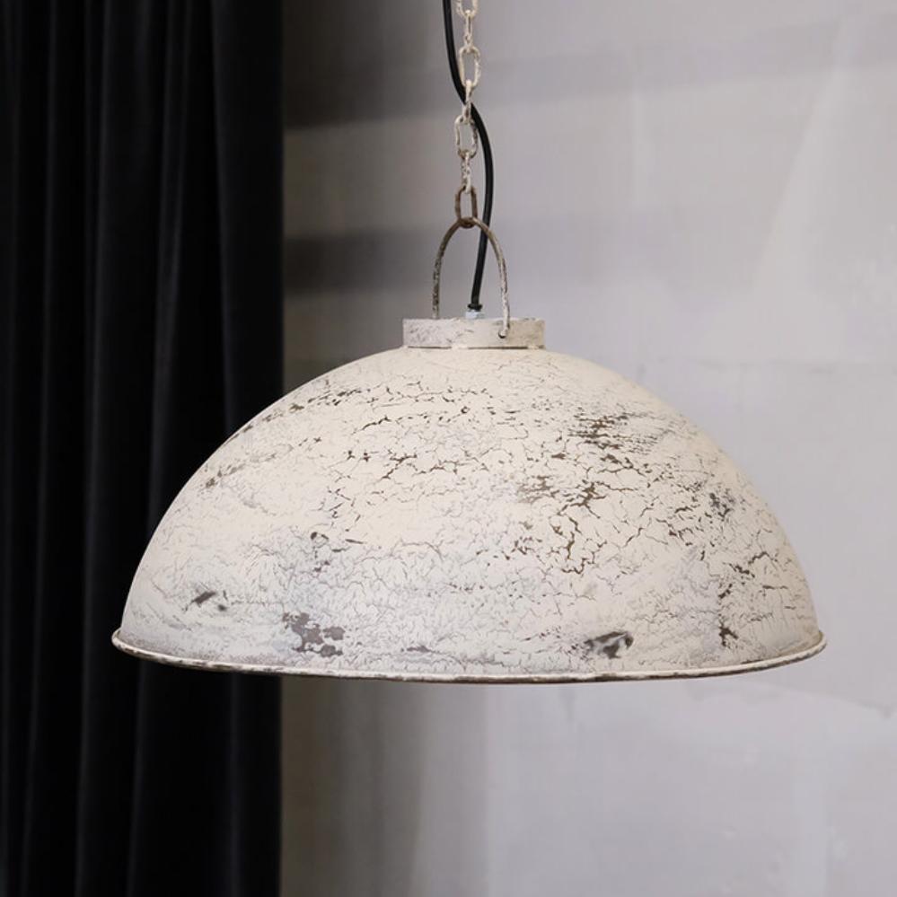 Den klassiske Thormann lampe i jern med hvid antikmalet patina er indbegrebet af vintage charme. Den runde form giver et blødt og behageligt lys, mens den slidte overflade tilfører masser af kant og karakter. Farven er afdæmpet og let at integrere i mange forskellige stilarter, fra rustik landstil til rå industrimiljøer. Perfekt til dig, der ønsker en lampe, som både er funktionel og et stilet statement i hjemmet, cafeen eller butikken.