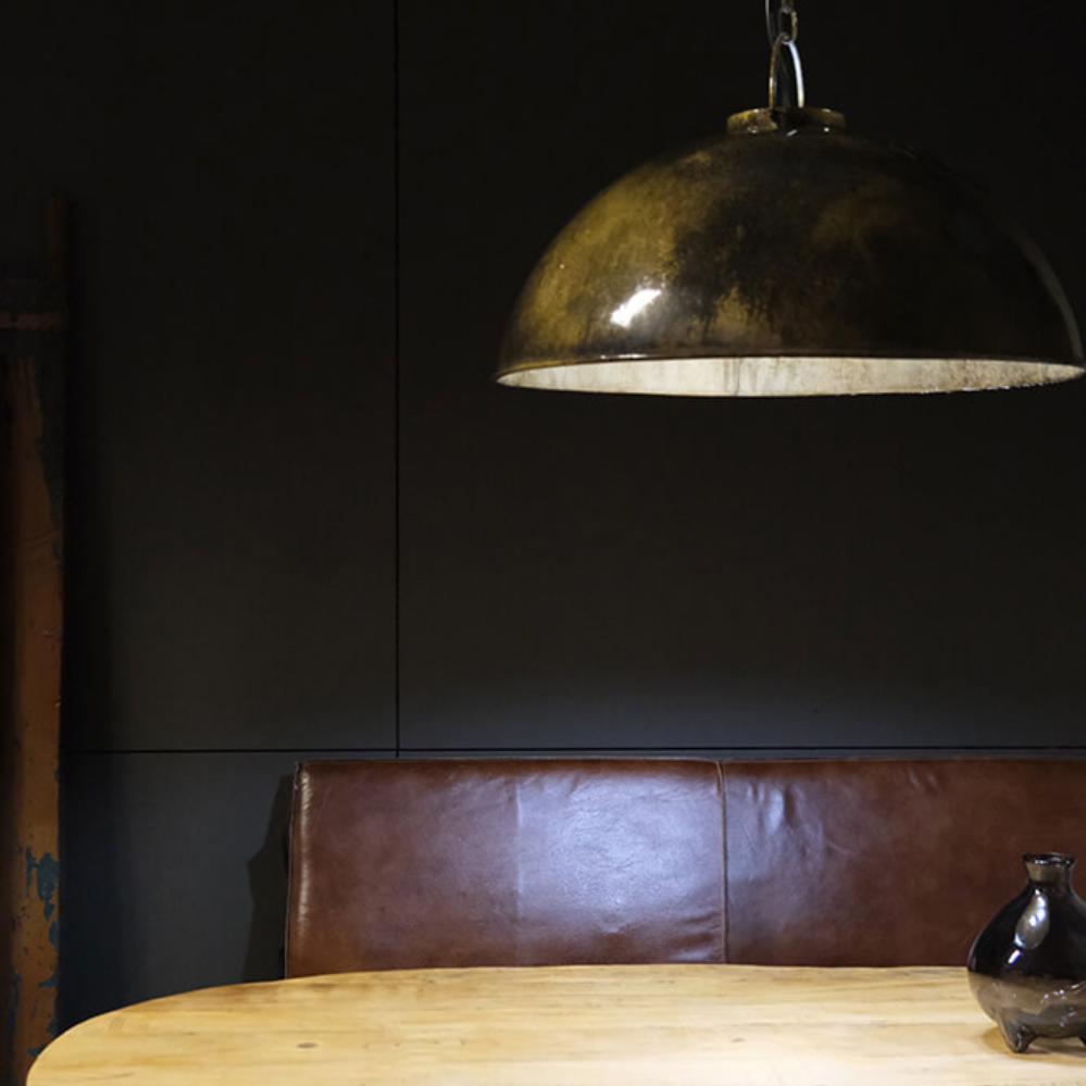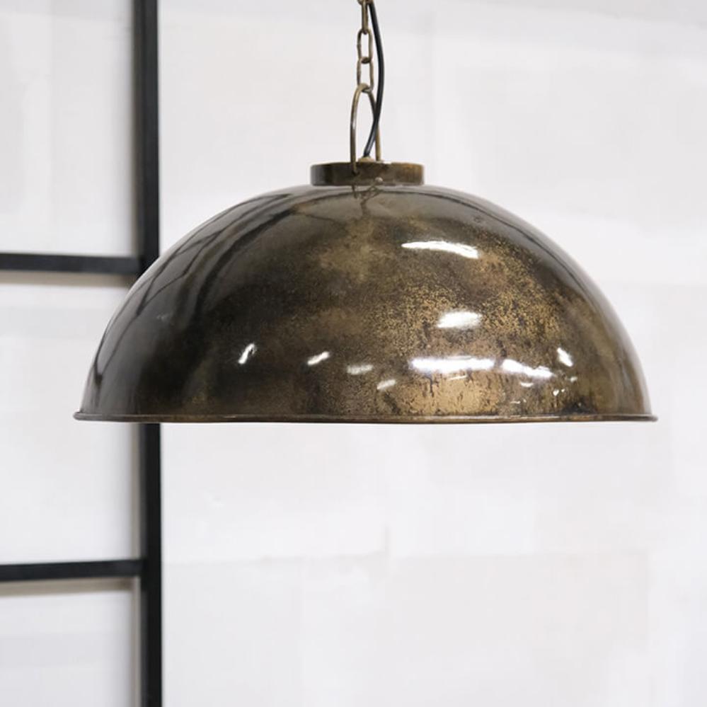 Denne Thormann loftslampe kombinerer et råt håndværk med et unikt farvespil i metaloverfladen. Den spændende metalmarmorering gør hver lampe individuel og giver et dynamisk præg, der kan tilføre varme og karakter til rummet. Lampens brede kuppelform giver et godt lysfald, som fungerer perfekt over spisebordet, et arbejdsområde eller i en caféindretning. En lampe der både fungerer som belysning og dekorativt midtpunkt, skabt til dig, der ønsker noget særligt til hjemmet eller butikken.