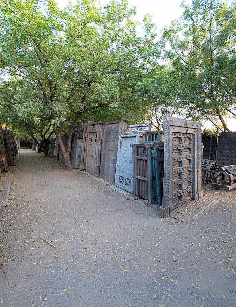 Denne smukke gamle dør oser af karakter og historie. Dens træramme i patineret blå og naturlige nuancer er kombineret med et detaljeret jerngitter, der giver døren et særligt udtryk. Gitteret tilføjer et industrielt touch, mens træets slidte finish skaber varme og charme. Denne dør er funktionel og et blikfang i sig selv, perfekt som vægdekoration, en dekorativ opdeling eller som en del af et større projekt med genbrugte materialer. En gammel trædør, der virkelig fortæller sin egen historie.