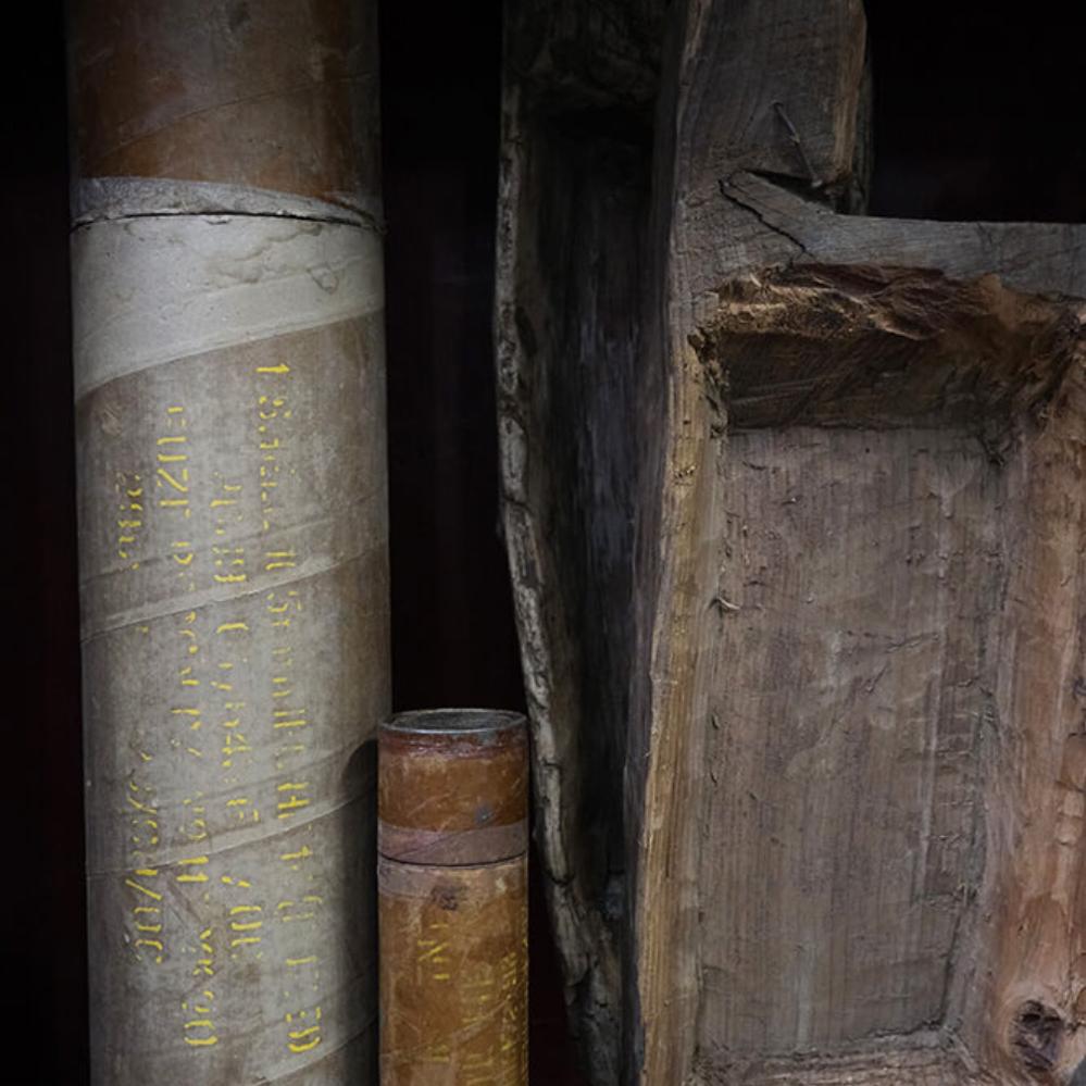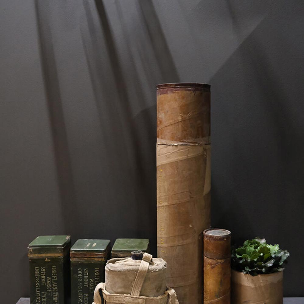 Store, rustikke ammunitionsrør i kraftig pap med låg. Hvert rør har sin egen unikke historie indlejret i overfladen, hvor slid, tryk og patina giver dem et råt og autentisk udtryk. Disse gamle ammunitionsrør kan bruges som dekorative elementer, der tilføjer karakter til indretningen, eller som praktisk opbevaring eller som indpakning af en god flaske vin. De er perfekte til dig, der elsker detaljer med kant og en fortid. Da alle rørene er forskellige, får du altid et unika med sit eget særpræg, et stykke rå nostalgi, som skiller sig ud og giver personlighed i både hjem, butik eller caféindretning.